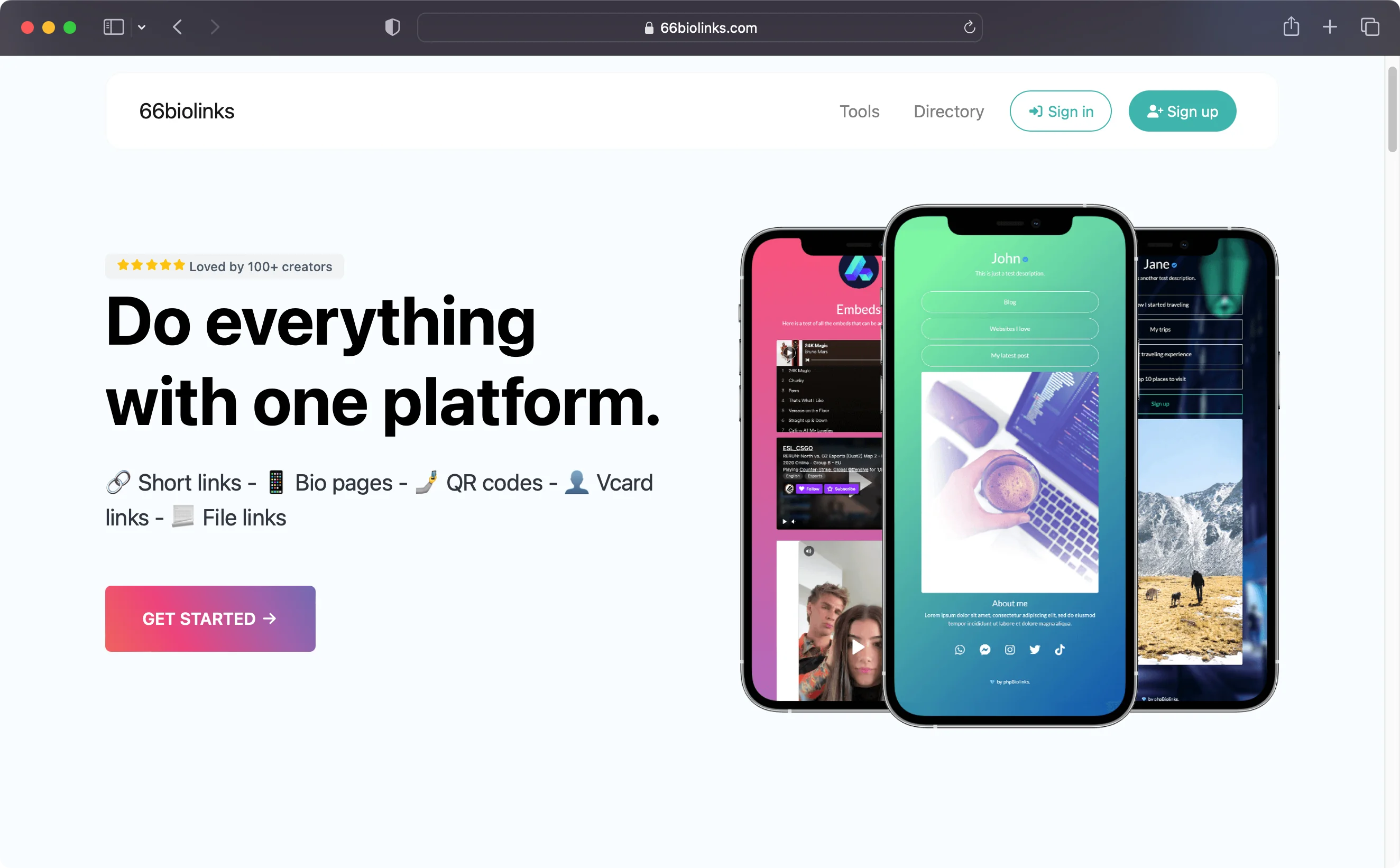 66biolinks (former phpBiolinks) is the only social bio link platform you’ll ever need, including a fully-featured URL Shortener, a QR Codes system & a Web Tools system featuring 126 useful tools.