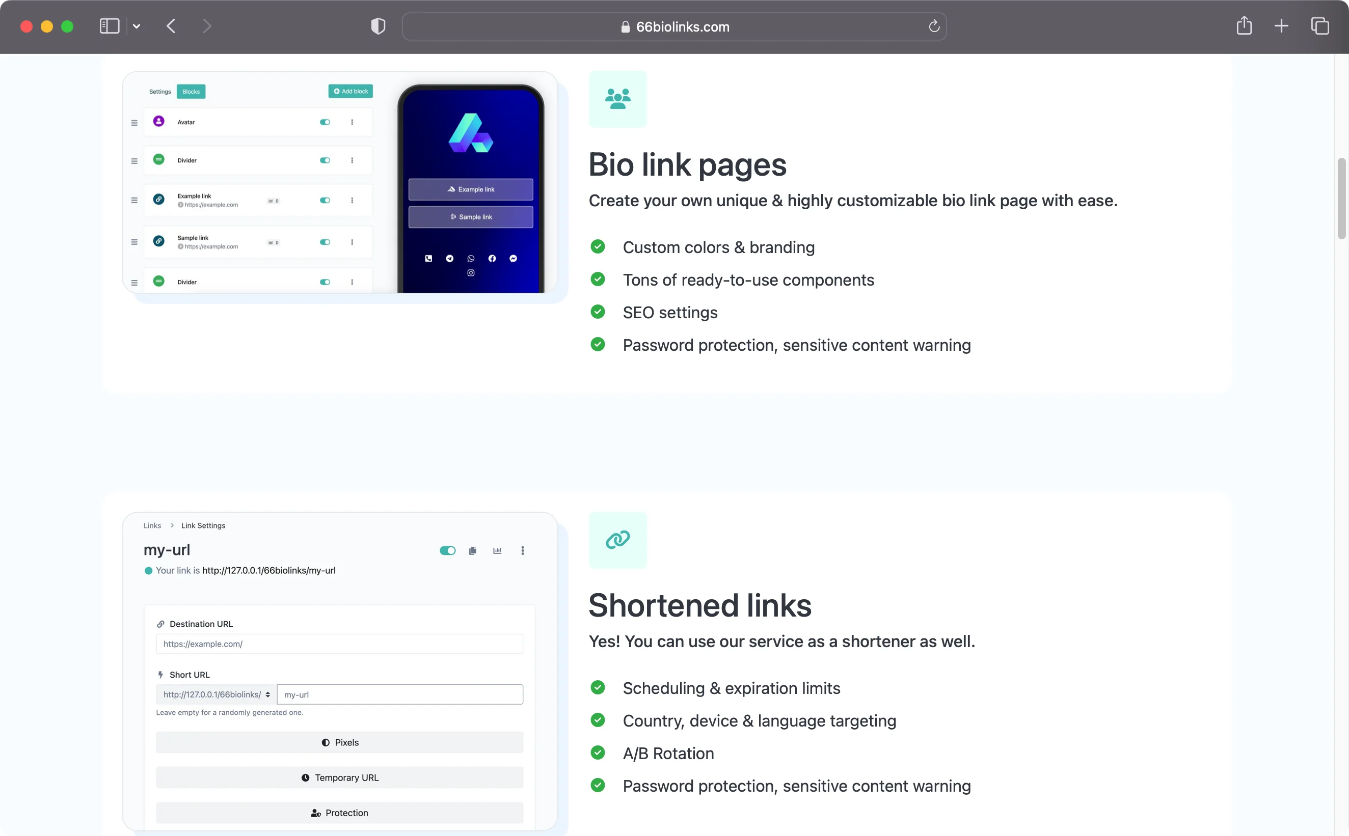 Use 66biolinks as a full-featured URL shortener with link management, statistics, and analytics.