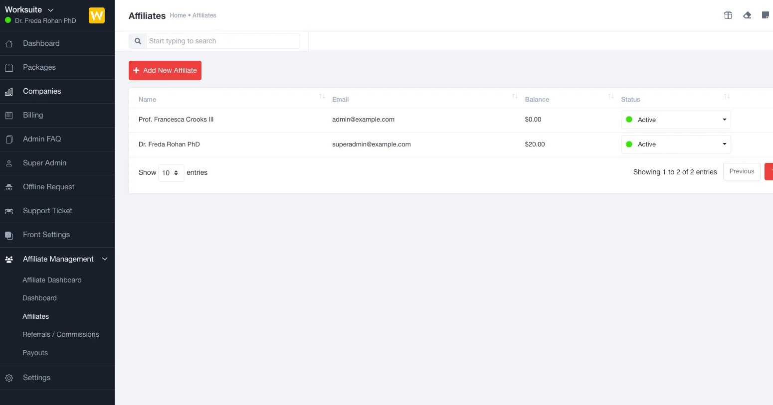 The Affiliate Module for worksuite saas