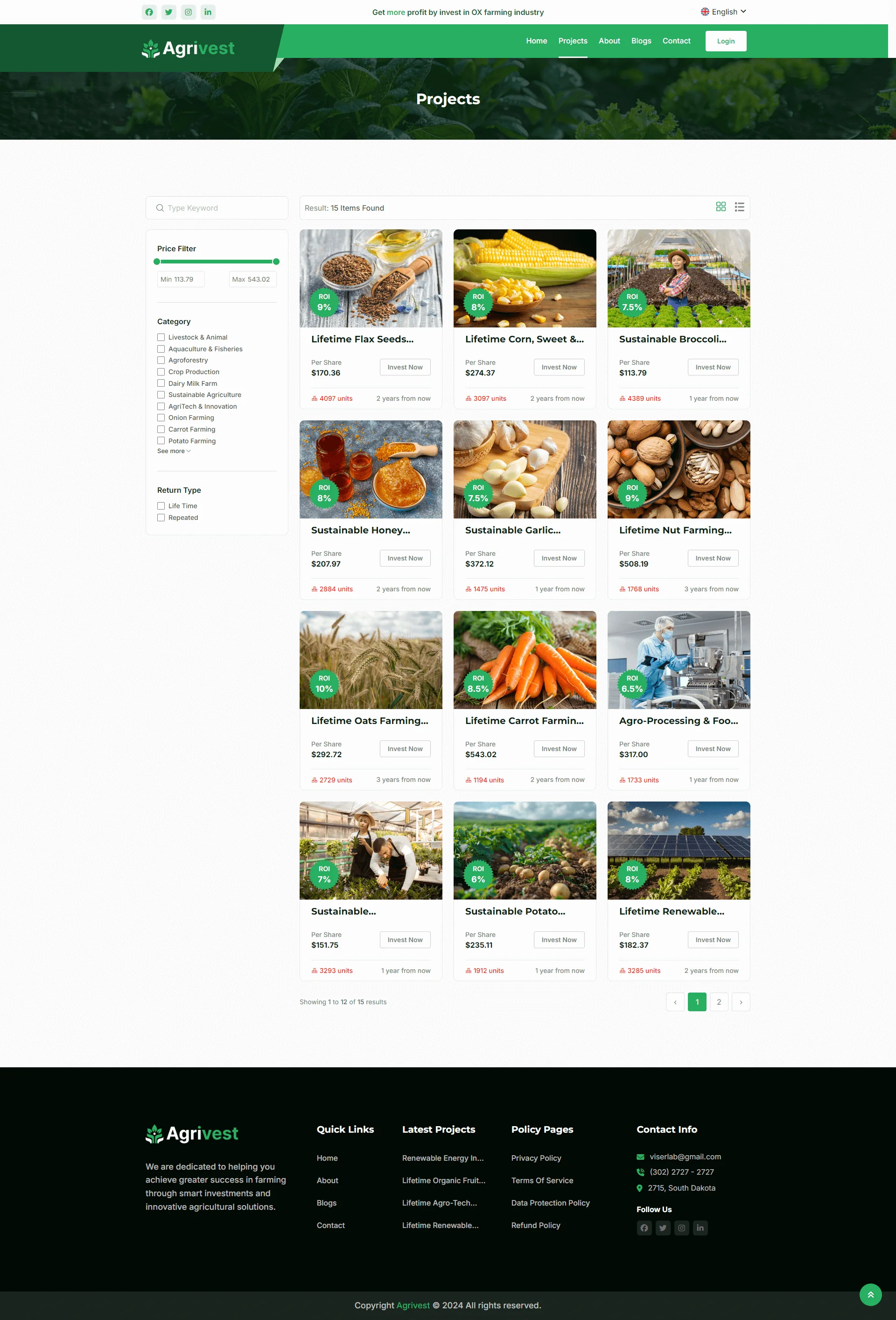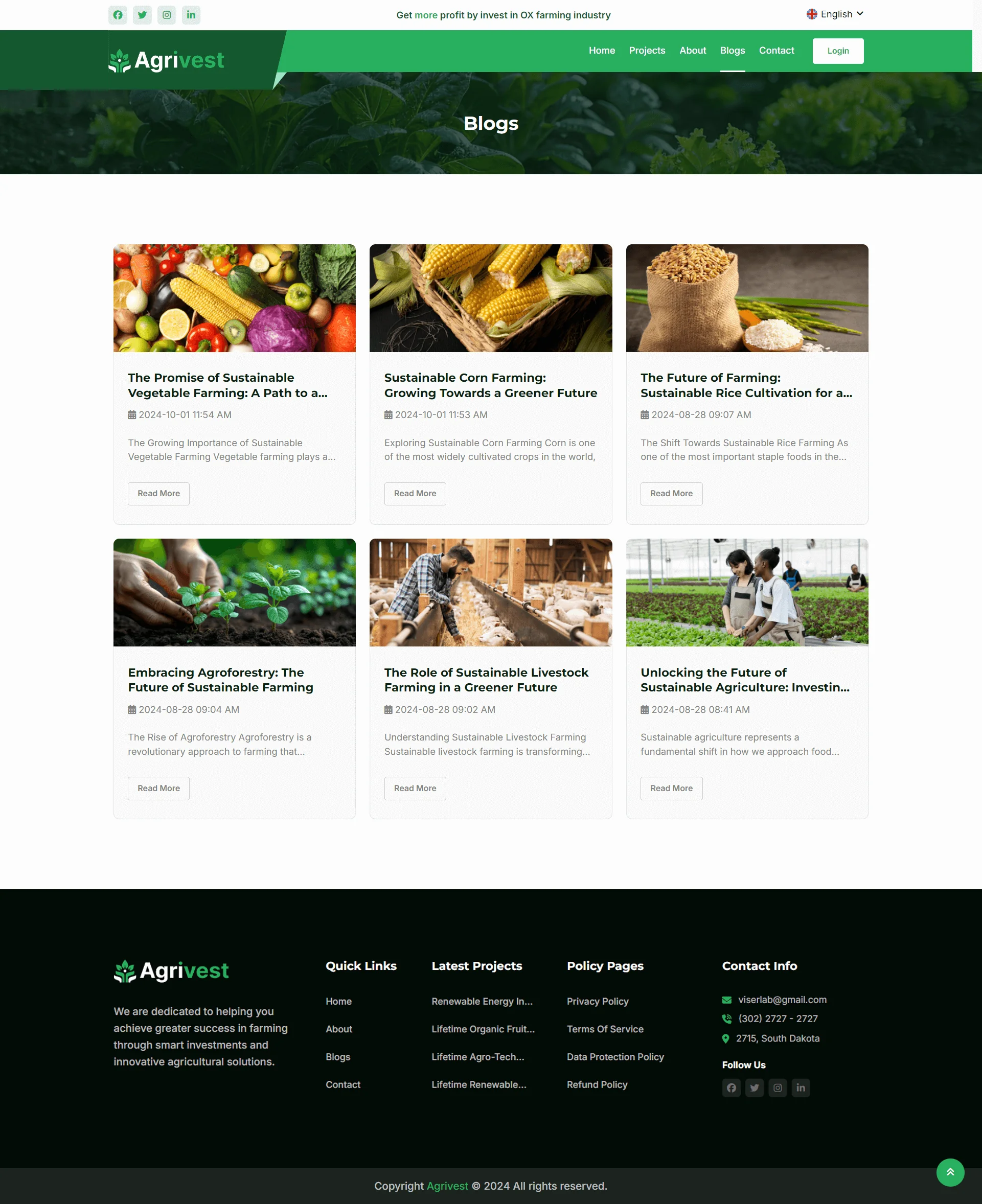 Agrivest is a ready‑made, self‑hosted software script built with PHP (Laravel framework) designed to enable the creation of an online platform where users can invest in agricultural and livestock projects.