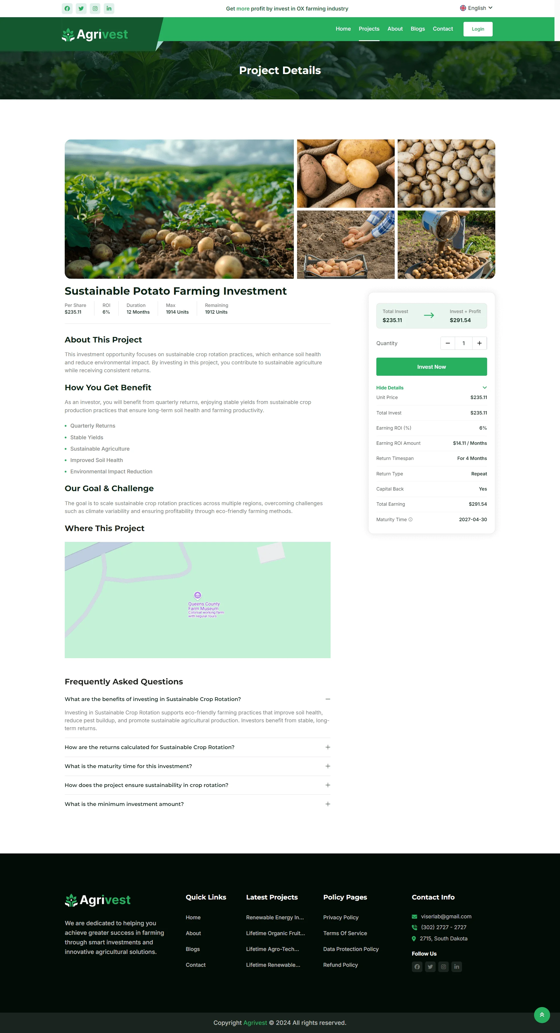 Agrivest is the ultimate investment platform tailored for eco-conscious investors, agricultural communities, and livestock organizations. It offers a comprehensive suite of tools to manage unlimited users, investment portfolios, agricultural projects, automated payments, return tracking, withdrawals, and in-depth analytics. With support for both traditional and automated payment gateways, Agrivest ensures seamless transactions. This ready-to-go system takes just minutes to set up, providing lifetime access with no hidden charges or encryptions. Designed to eliminate traditional development complexities, Agrivest enables the swift creation and management of a fair, transparent, and efficient agriculture and livestock investment platform—empowering the next generation of smart, hassle-free investment solutions.