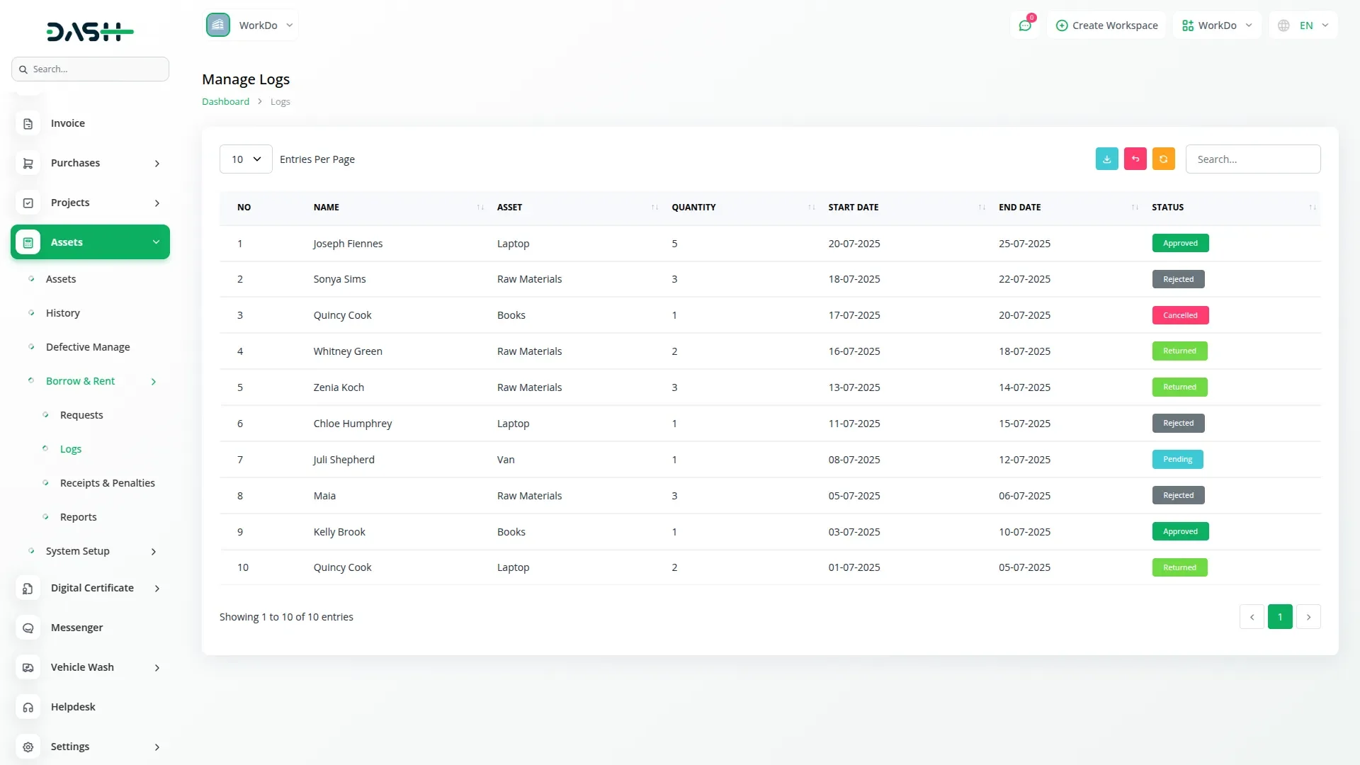 Dependency Notice:The Asset Borrow & Rent Add-On is dependent on the Assets Add-On. If the Assets Add-On is disabled, the Assets Borrow & Rent Add-On will not function. Ensure that the Assets Add-On is activated to utilize the Assets Borrow & Rent features.