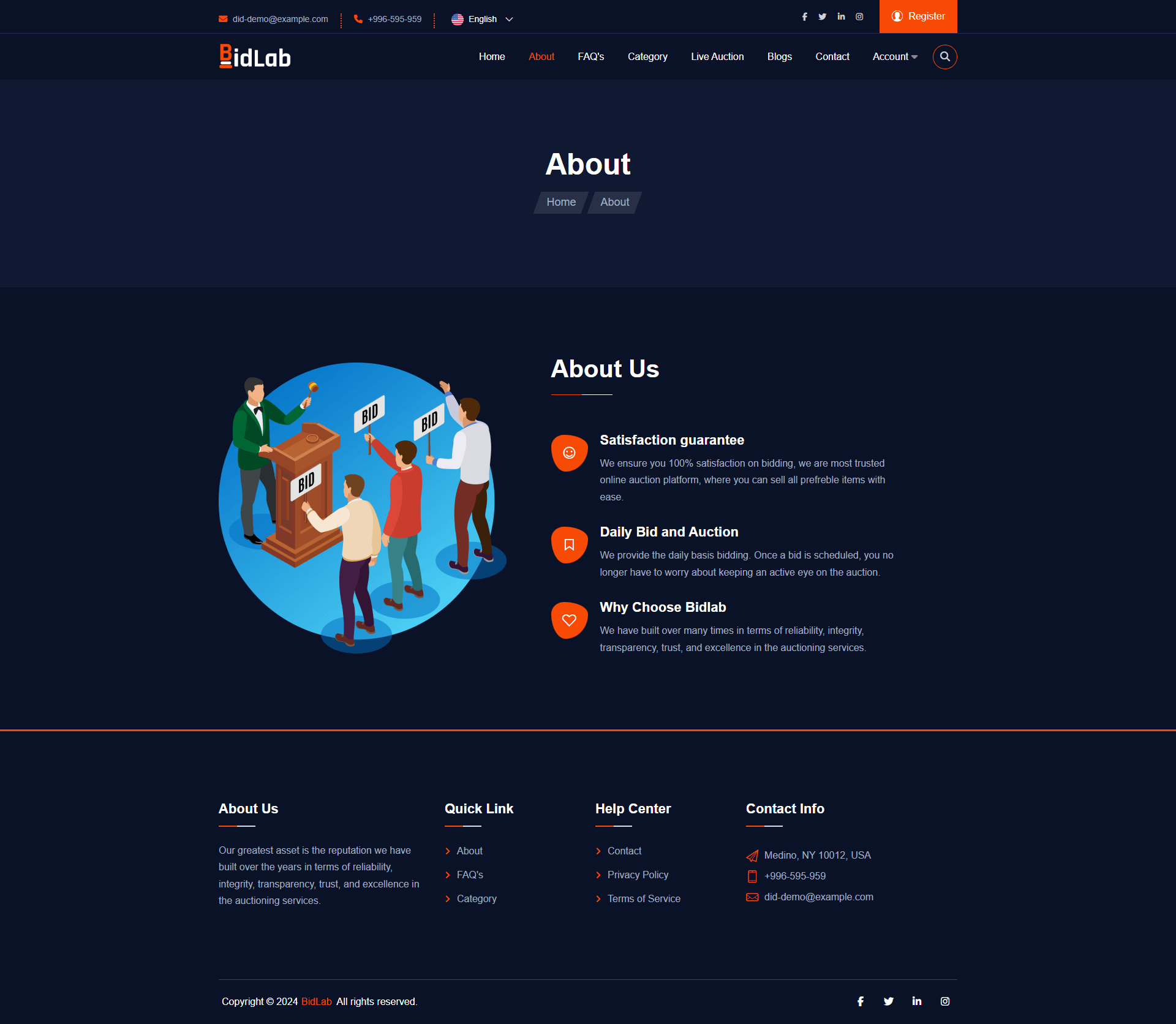 BidLab is a unique Bid and Win platform. You can make real-time transactions whenever and wherever you like. The platform can be accessed not only from a PC, but also from a full-service mobile. Its easily installable, controllable through the admin panel, comes with a responsive design, high security, interactive User interface. support plugins, LiveChat, Google ReCaptcha, analytics, automatic payment gateway, cards, currencies, and cryptos.