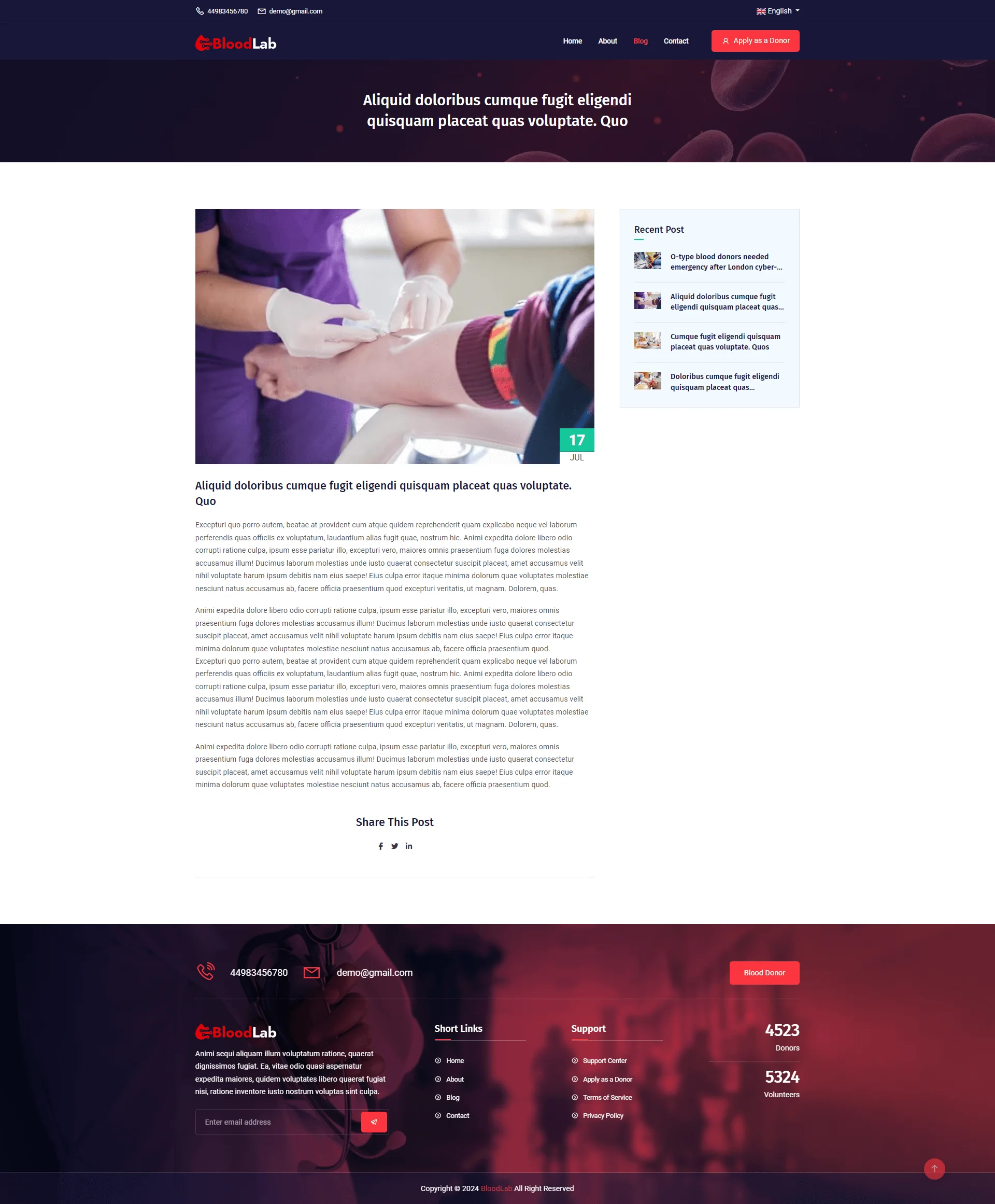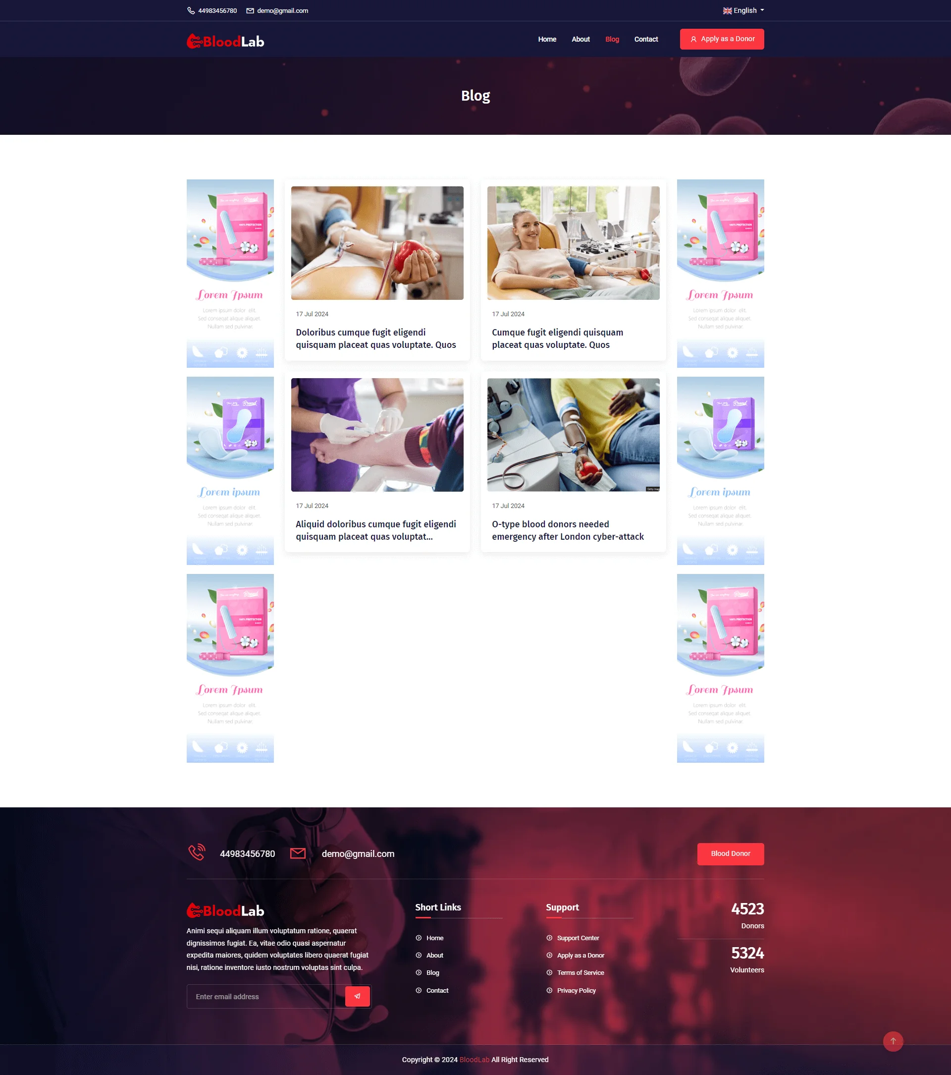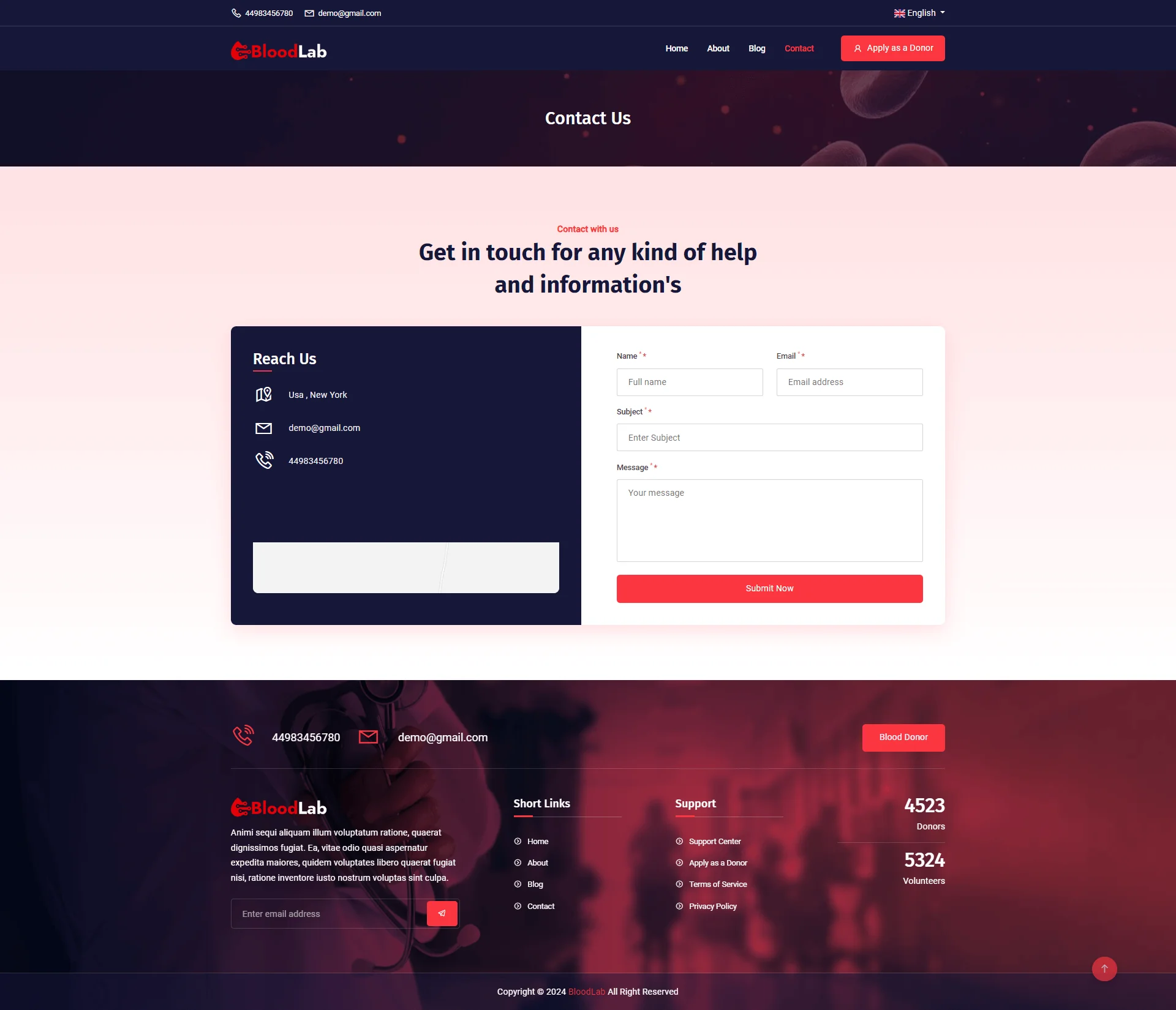 BloodLab is a very easy and simple Blood Donor & Volunteer Listing application that has dynamic frontend and backend features. The site is very neat and clean and the process is very easy to use. user able to search for desire donors and list their own easily, there are features of donors listing too. Blood donation platforms are gaining more and more popularity nowadays and we keep maintaining all the demands of our users. comes with both advertisement features, full management, SEO, multi-language, LiveChat, Plugins manager, and more…
