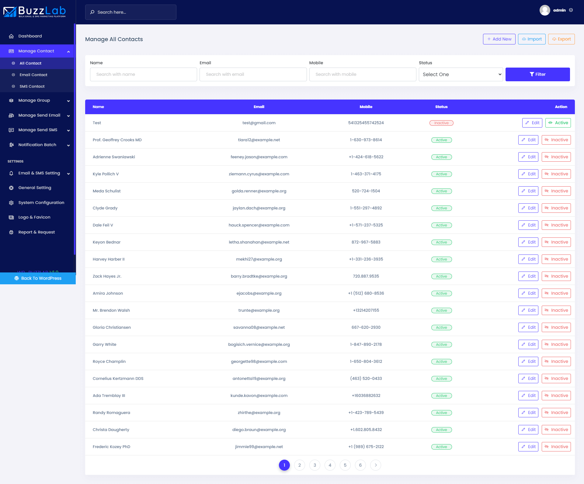 If are you looking for a complete Email & SMS Marketing solution system to promote your business via WordPress CMS, then you are in the right place. No need to pay thousands of dollars to hire developers to build your Digital Marketing tools. BuzzLab may assist you to handle unlimited contacts, phone numbers, emails, groups, and more. the ready-to-go solution, it takes only a few minutes to set up your website with our system. we are also here to provide you the best support, installation, and customization if you need it. hurry up, get your copy, and start marketing.