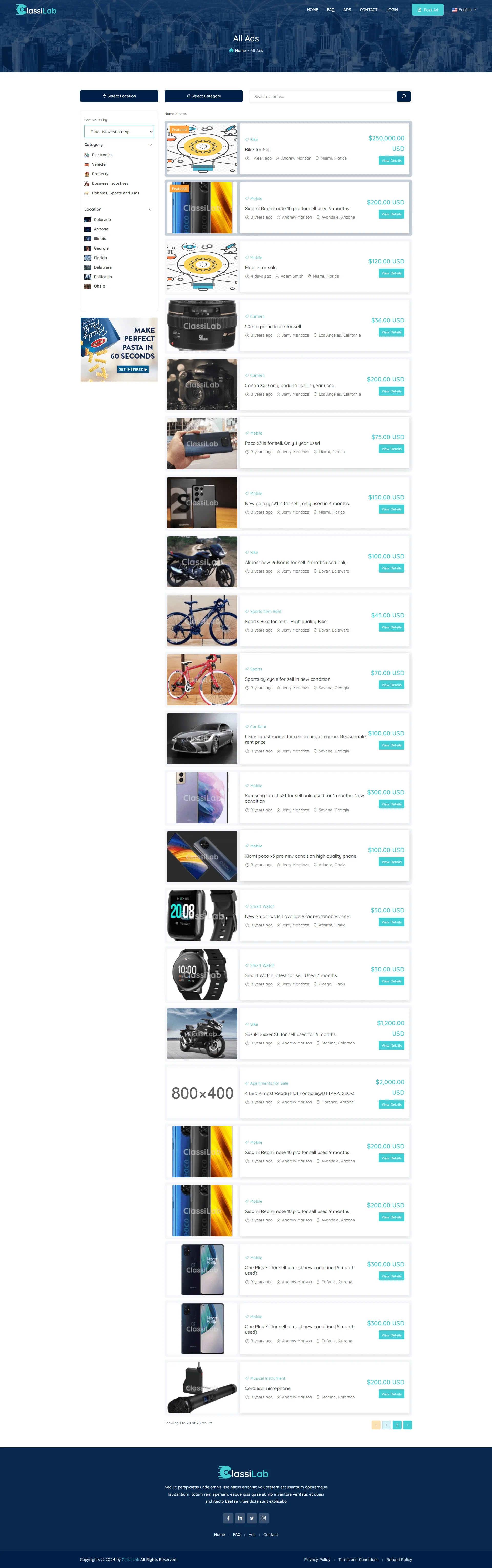 ClassiLab is a versatile classified ads platform designed to connect buyers and sellers in a secure, easy-to-use online environment. It allows users to post, browse, and respond to ads for a wide range of products and services, from electronics and vehicles to jobs and real estate.