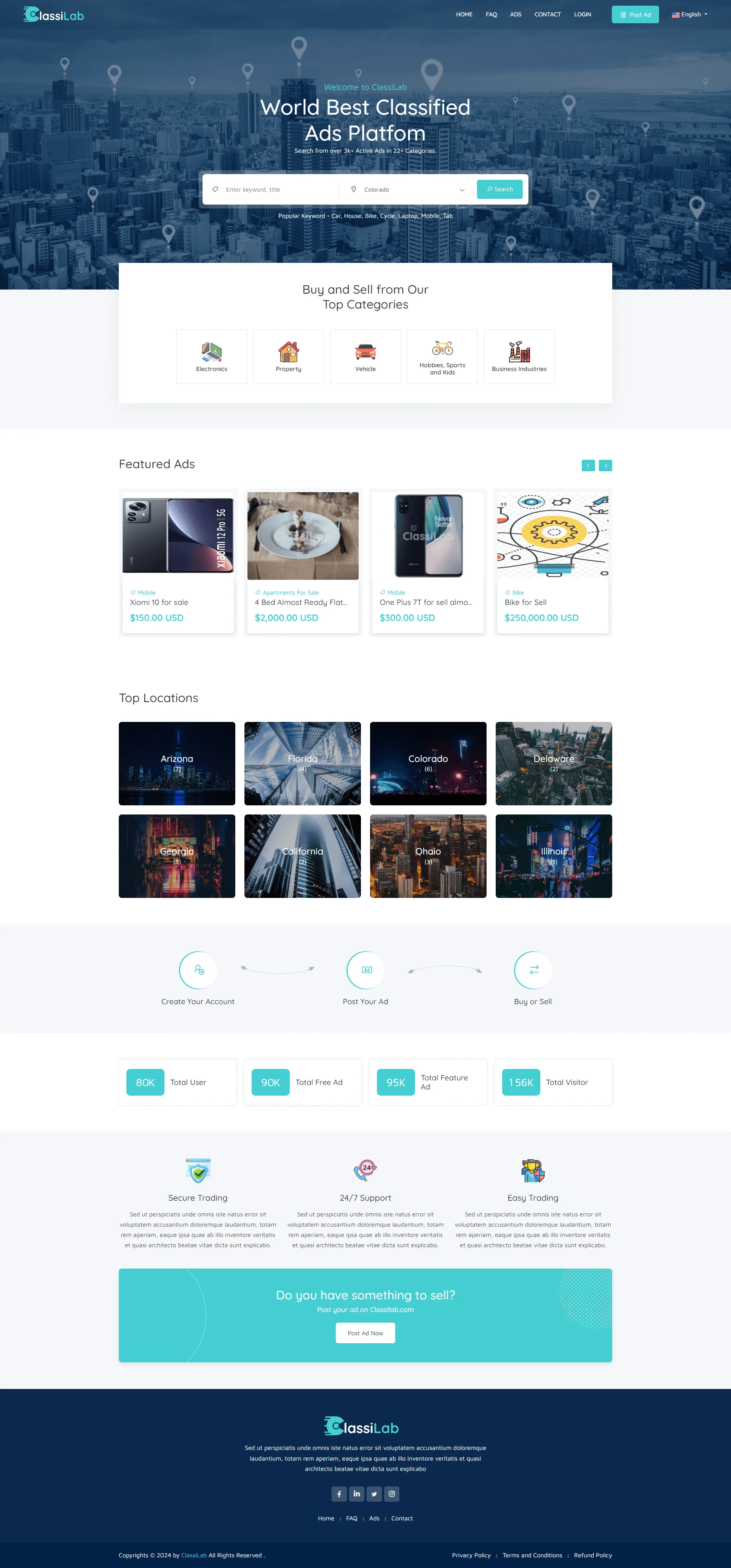 ClassiLab is a very easy and simple Classified ADS Listing application that has dynamic frontend and backend features. The site is very neat and clean and the process is very easy to use. user able to registered and list their item easily, there are promote promotion features too. Classified platforms are gaining more and more popularity nowadays and we keep maintaining all the demands of our users. comes with both automated and manual payment gateways, full management, SEO, multi-language, LiveChat, Plugins manager, and more…