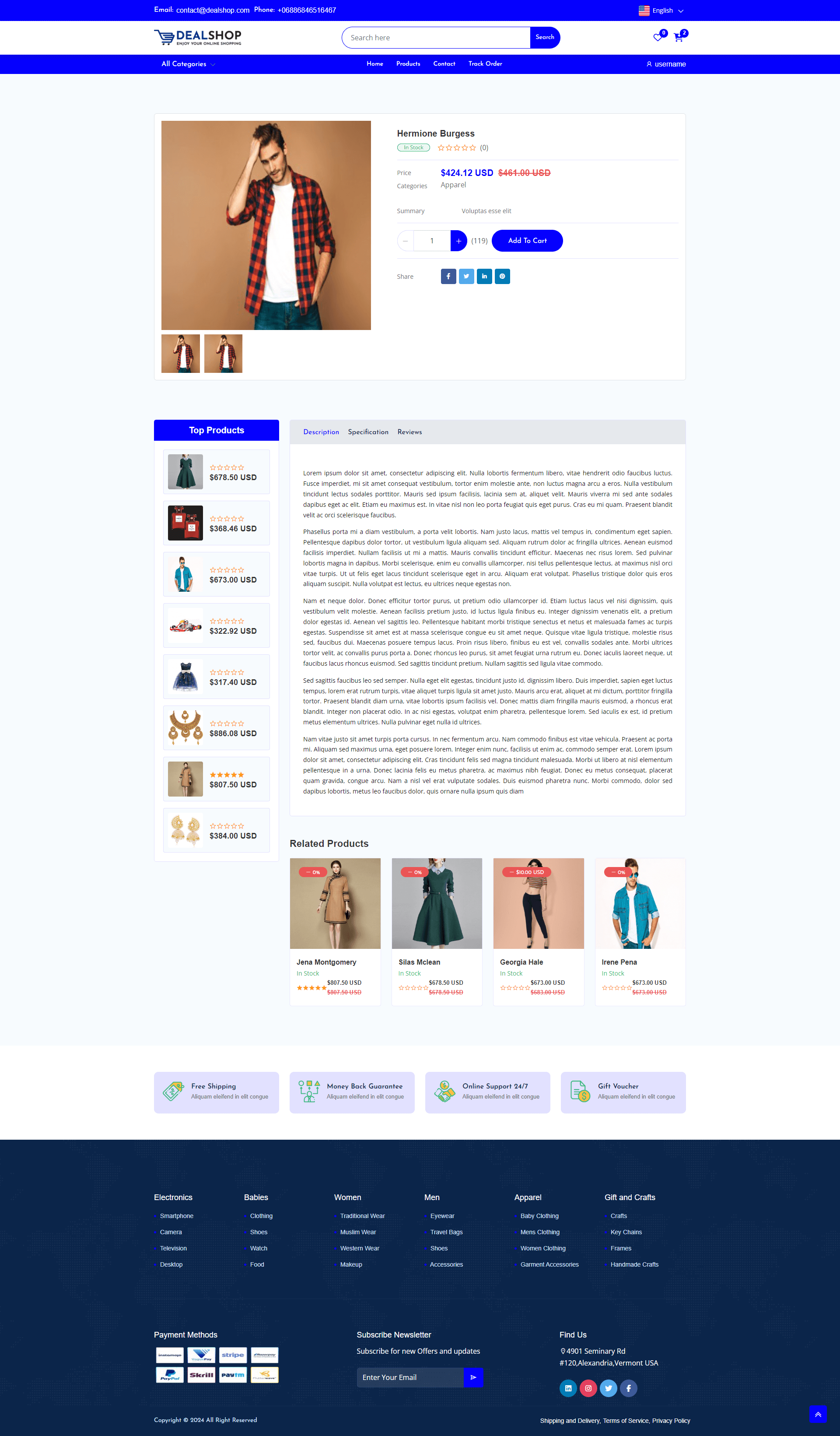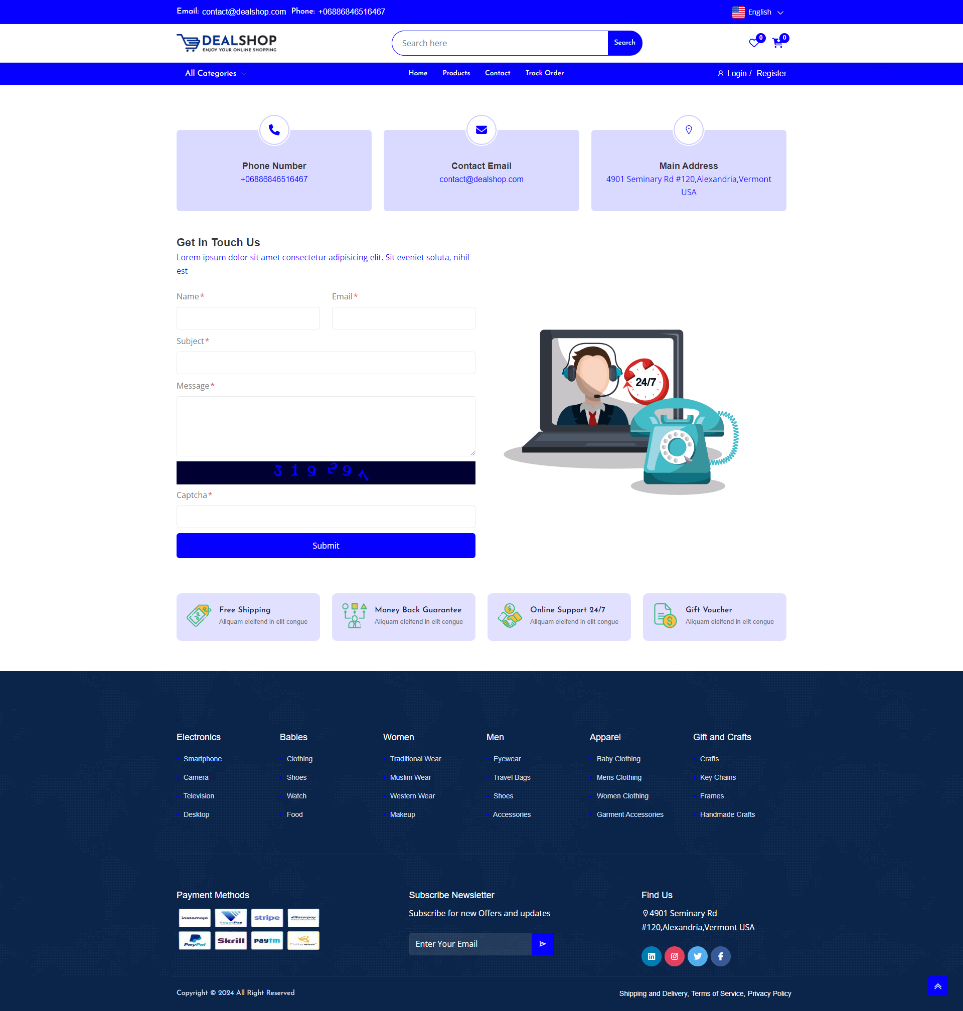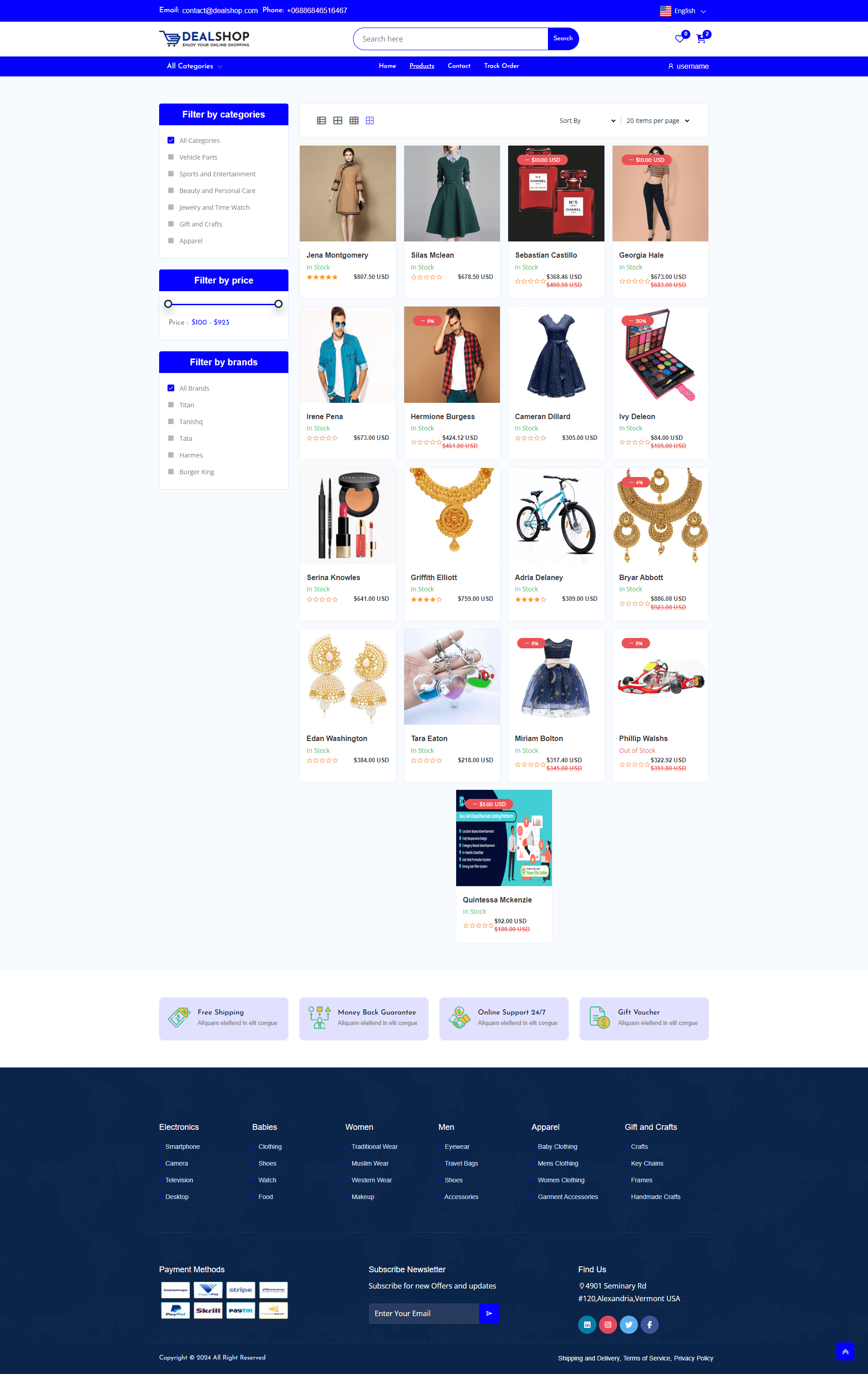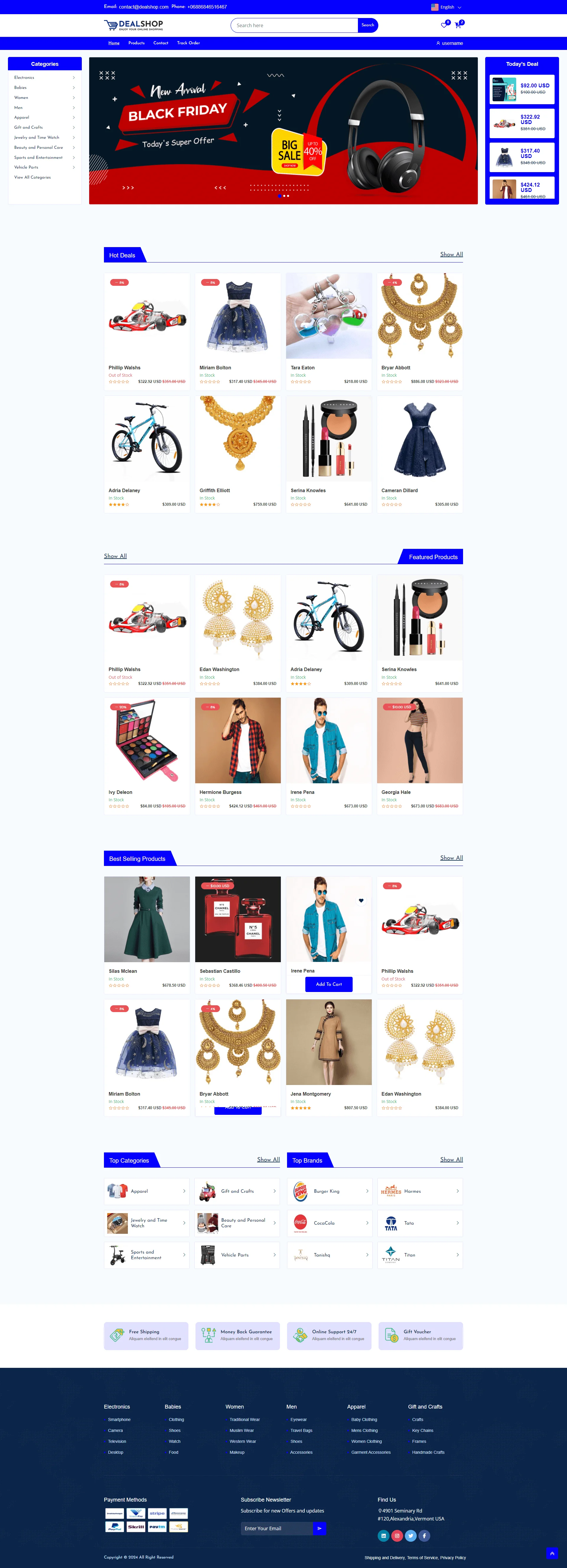 Customers can browse products through an intuitive storefront, add items to the cart or wishlist, securely checkout using multiple payment methods, and track their orders in real time. DealShop also includes features like discount/coupon management, product reviews, responsive design, SEO tools, and multi-language/multi-currency support—making it suitable for any global ecommerce business.