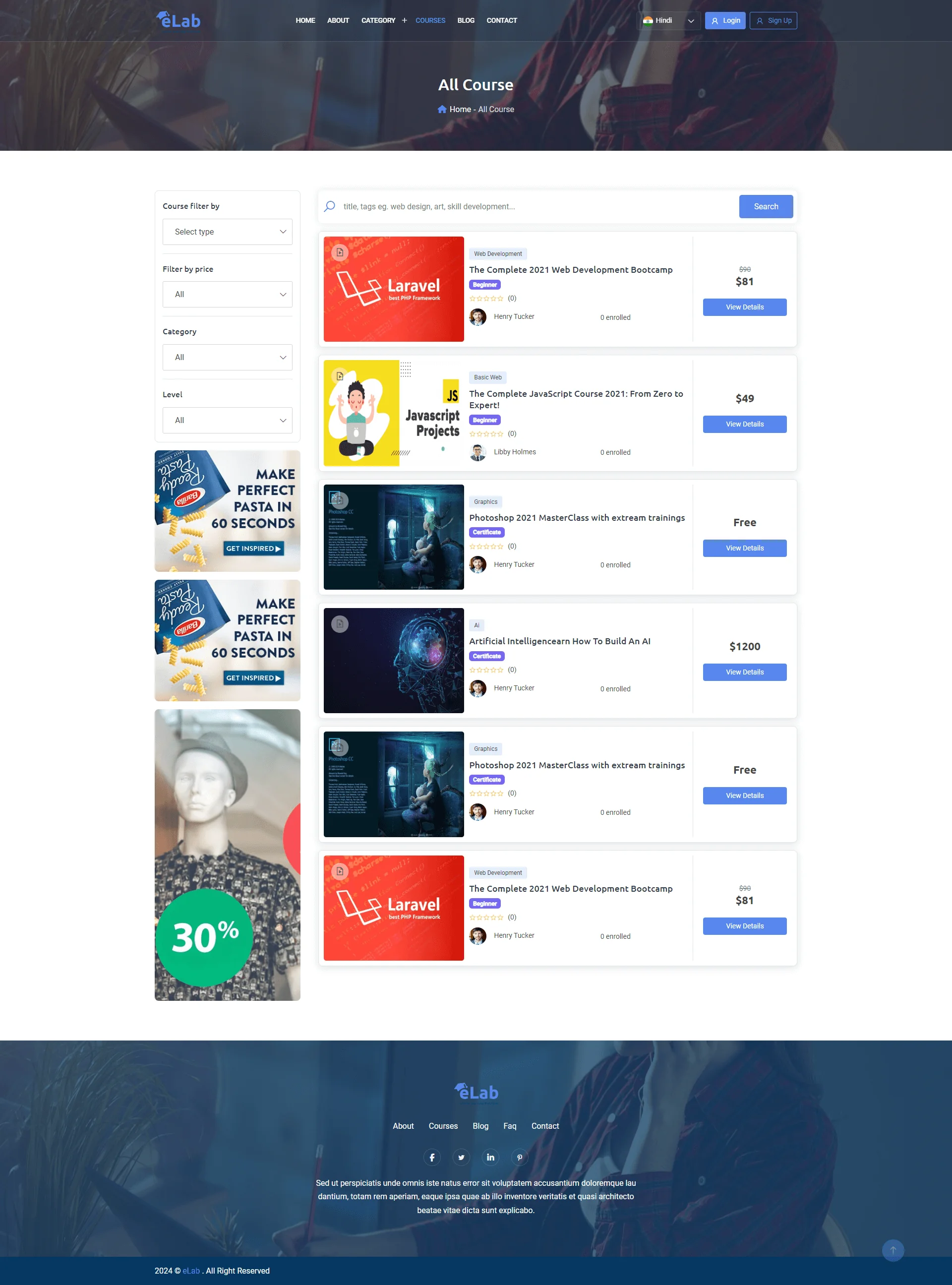 eLab, a professional Online Learning and teaching Marketplace system that comes with PHP laravel. It’s developed for those people who want to start their own Online Course selling Marketplace website. globally, There are over 700 Learning Management System providers in the market, and most target corporate Learning & Development. Udemy is one of the best online course platform marketplaces with over 24 million students, 35,000 instructors, and unbelievable 80,000+ courses. eLab, a complete solution for Learning and Teaching Marketplace businesses. here, Instructors can join for free and sell their items, Learners are able to download the free courses to learn, Learners are also able to purchase other instructor items by the login. 20+ payment gateways are here with 250+ currencies set up.