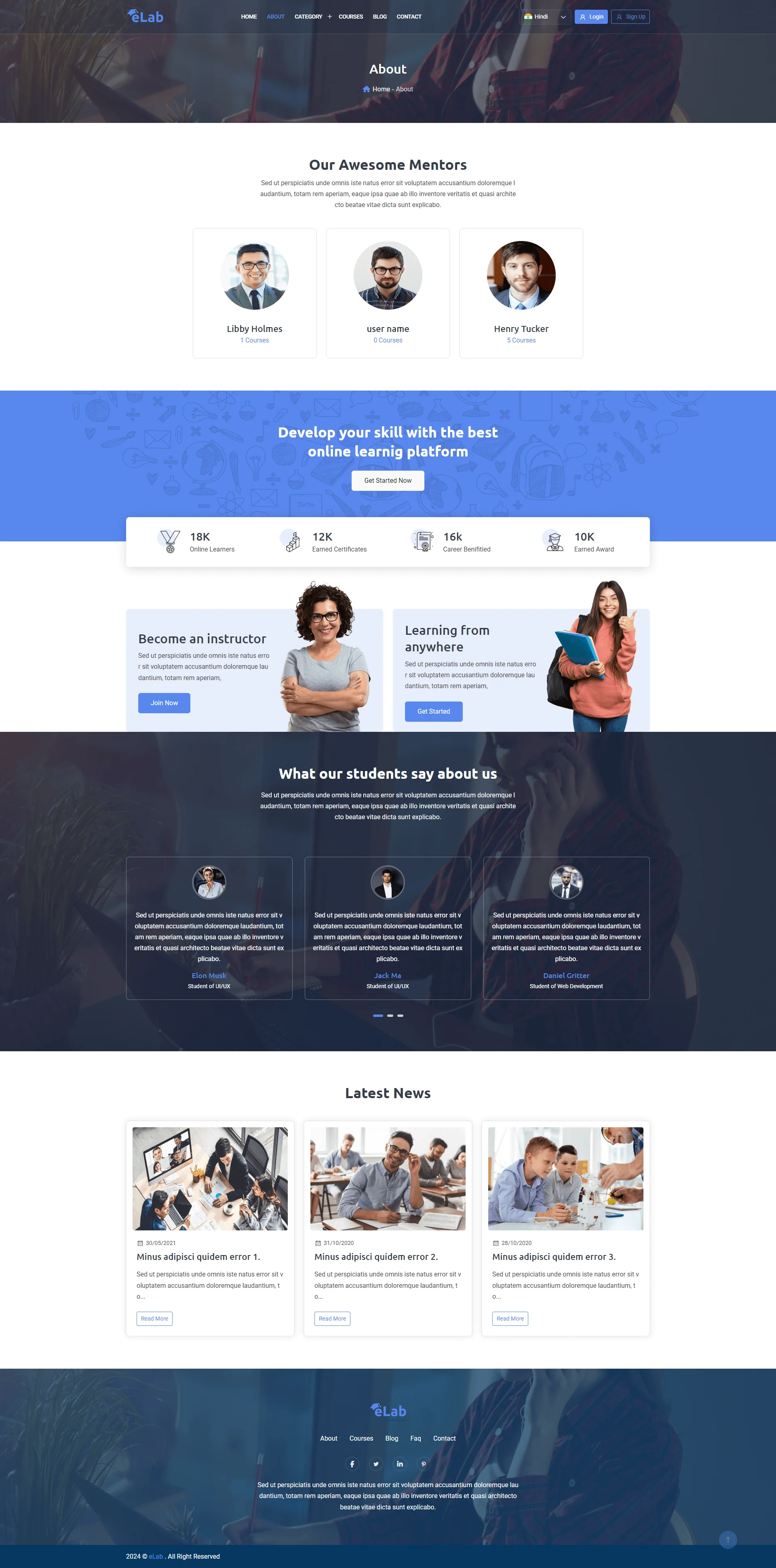 eLab is a modern and fully interactive online learning and teaching platform designed to make digital education accessible, engaging, and scalable. Built with powerful LMS capabilities, eLab enables instructors, schools, and organizations to create and sell online courses, host live classes, manage students, and deliver professional learning experiences across all devices.