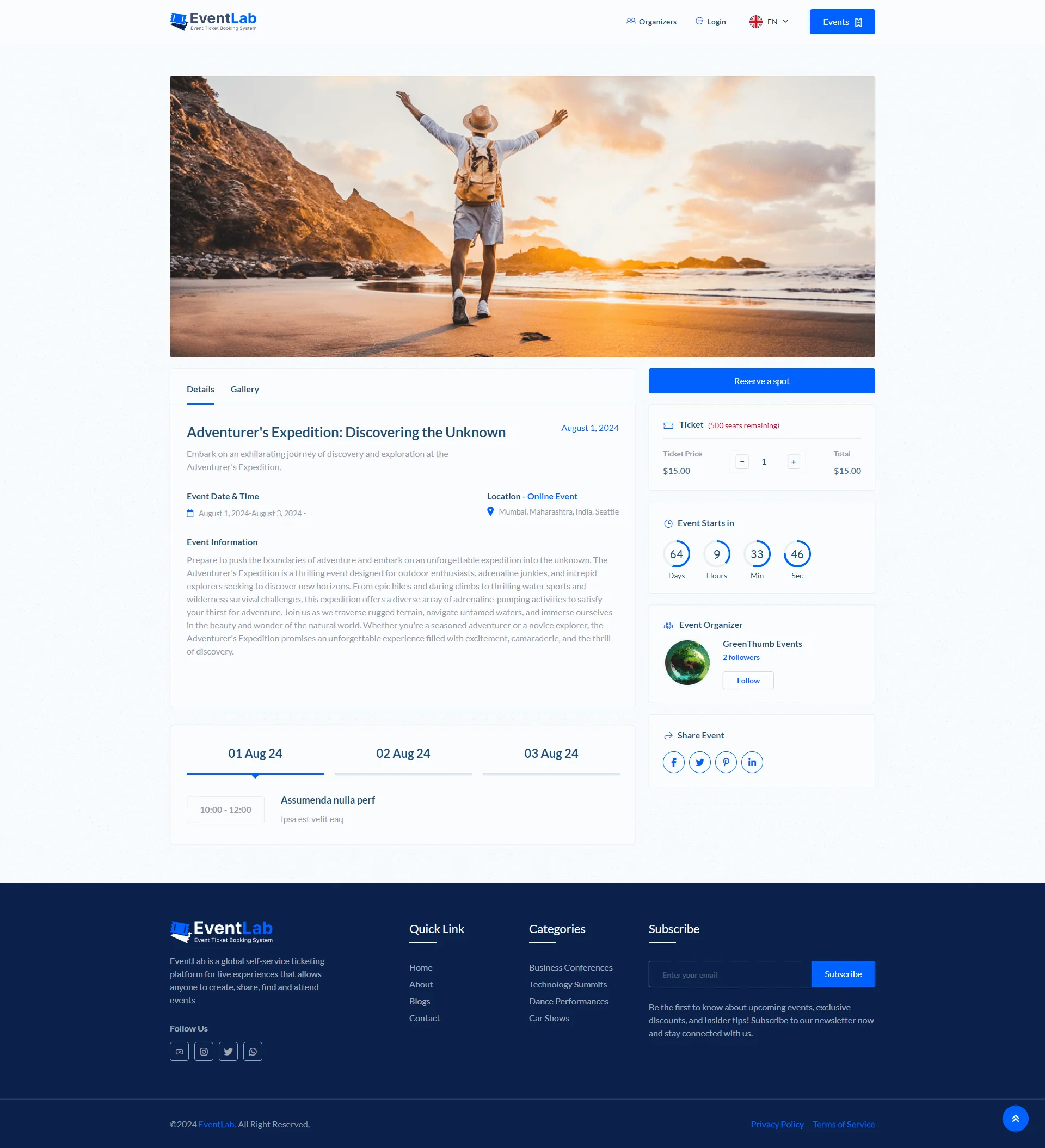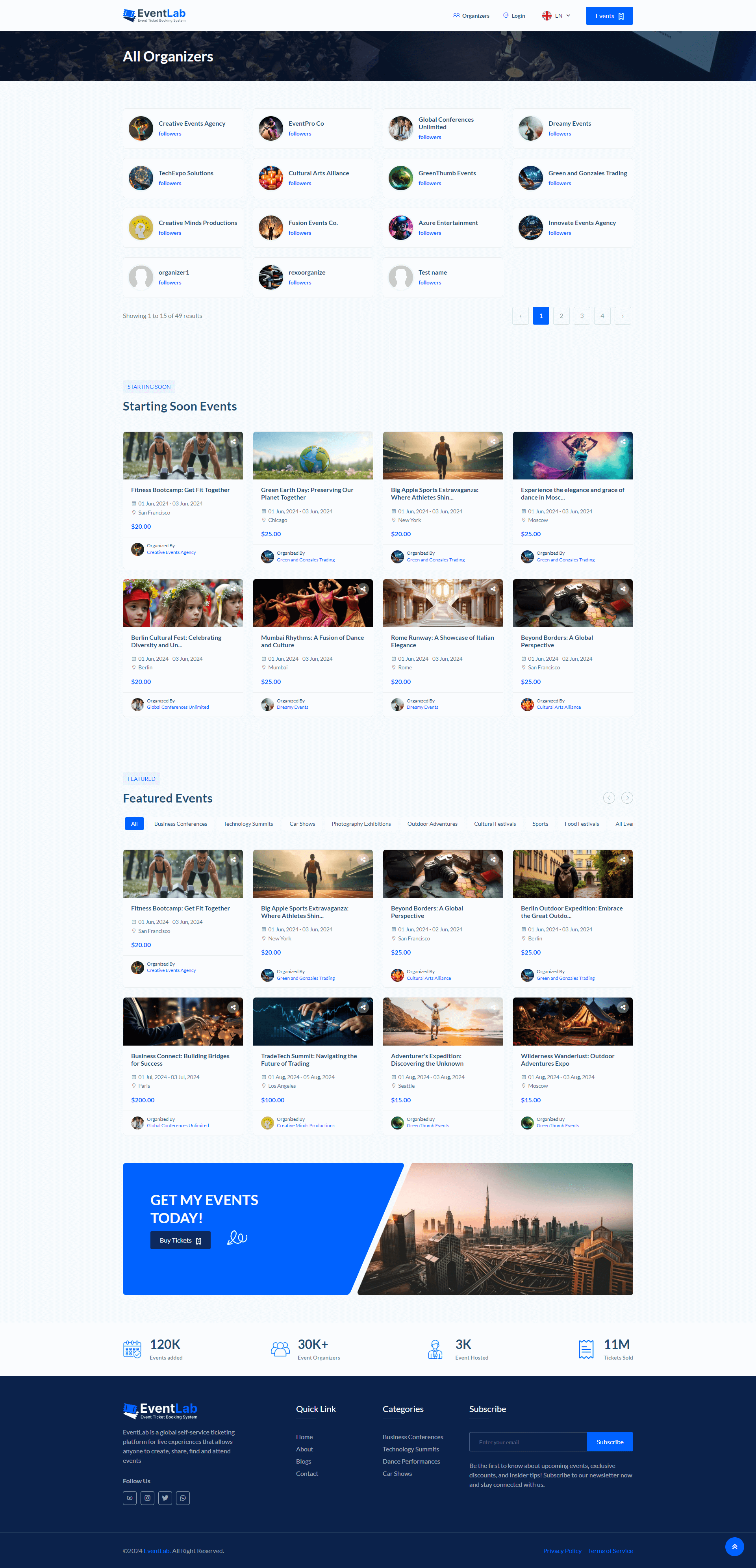 EventLab, a Smart & Exclusive Events ticket booking marketplace, comes with Huge automation with Automated payment, organizer Panel, Digital Notification, Profile followers, Secure Transactions, and more. No Monthly Fees, No Hidden Charges, and No Encryptions. comes with a lifetime, and affordable price. EventLab comes with all the essential features required to automate your Events ticket booking business globally. Discover a cutting-edge platform for a seamless Event ticket-selling business. Engage in the dynamic admin panel, simplify purchases, and enjoy secure transactions. Effortlessly connect with social login and choose from multiple payment options. Join us for a smarter, safer, and more engaging digital experience. Get ready to experience the ultimate thrill of a ticket Selling Marketplace business website with EventLab! Explore inbuilt features designed to elevate your experience.