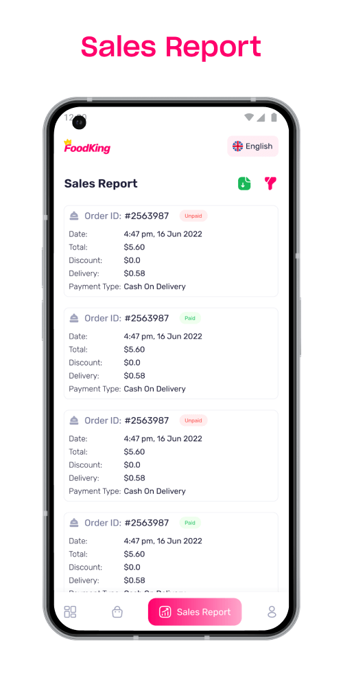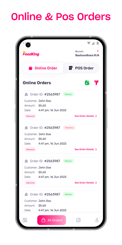 Introducing the FoodKing Admin Mobile App: Your Restaurant’s Command Center On-The-Go. Our intuitive Flutter-powered app empowers restaurant owners and administrators with seamless control over their culinary empire, right from the palm of their hand. Effortlessly manage online and in-store orders, monitor order progress, access critical restaurant data, and stay in the know with real-time updates. From tracking deliveries to customizing menus, from analyzing sales trends to engaging with customers, FoodKing Admin is your trusted partner for culinary success. Elevate your restaurant management game with the FoodKing Admin Mobile App and experience a new era of efficiency and excellence in the world of dining.