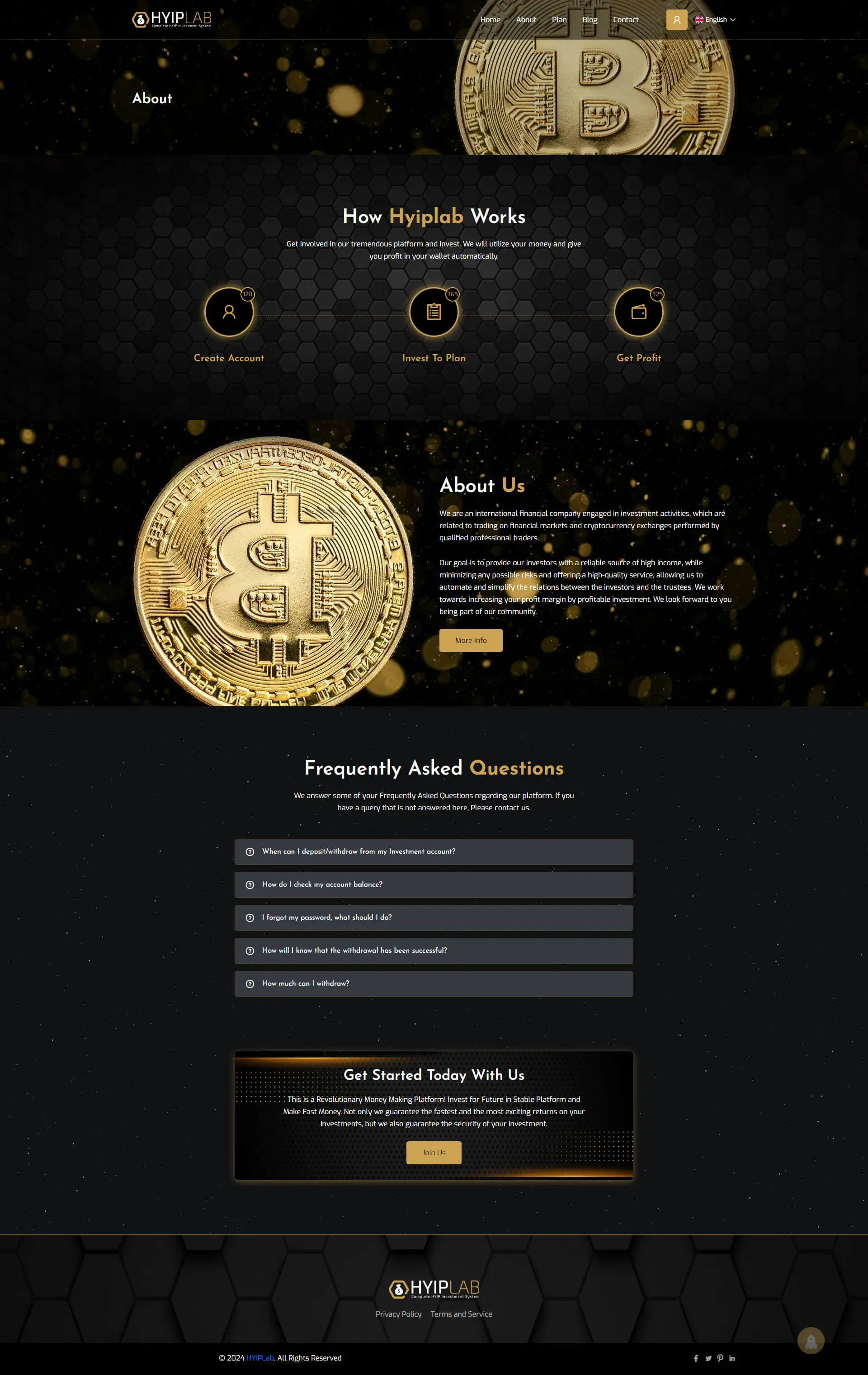 HYIPLAB is a fully integrated High-Yield Investment Program (HYIP) management system designed for modern investment platforms. Built for efficiency, security, and scalability, HYIPLAB empowers businesses and entrepreneurs to launch, manage, and optimize HYIP projects with ease.