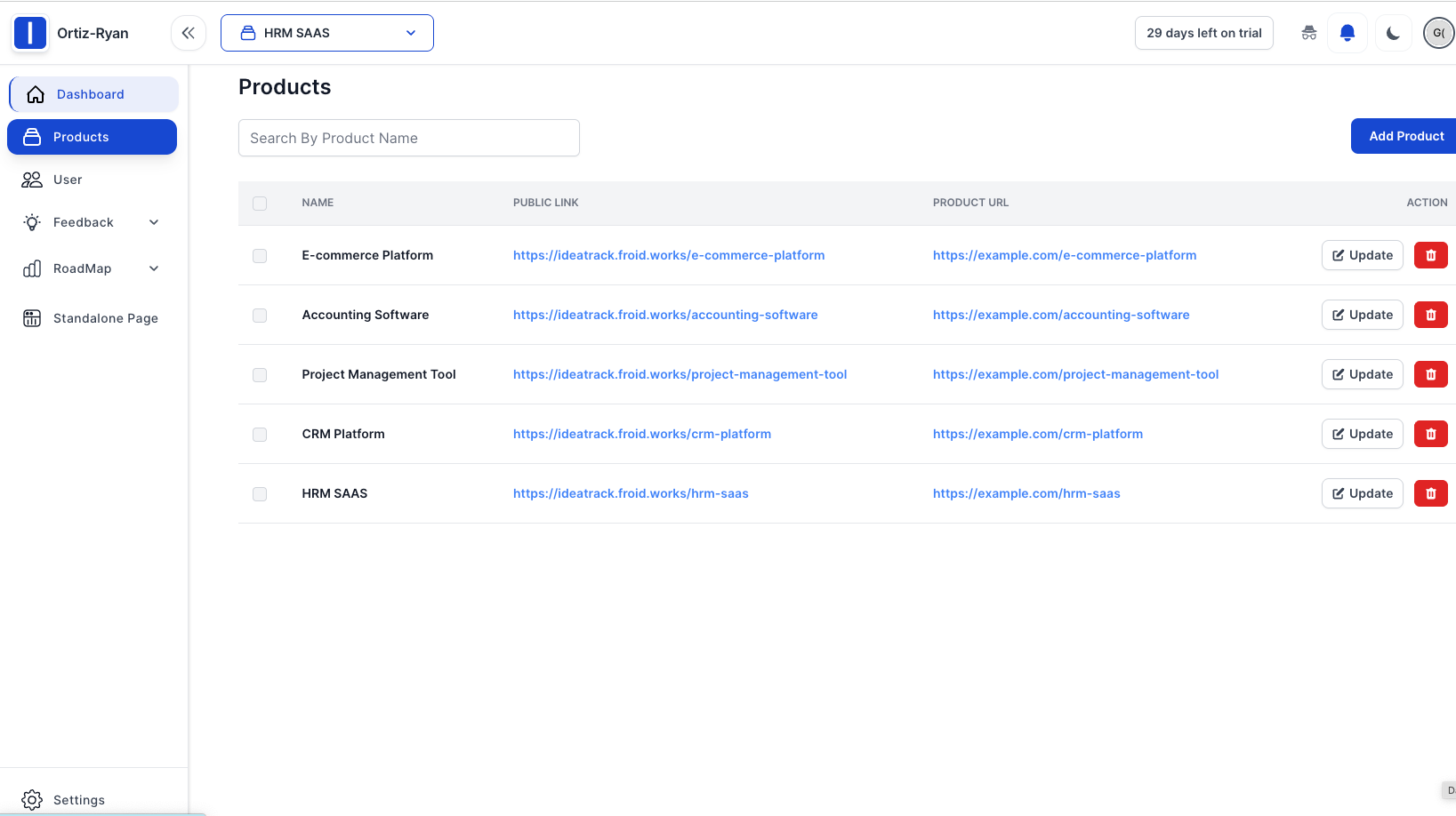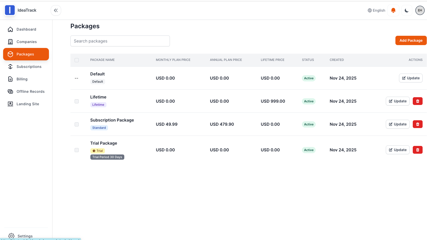 URL: https://ideatrack.froid.worksEmail: superadmin@example.com Password: 123456