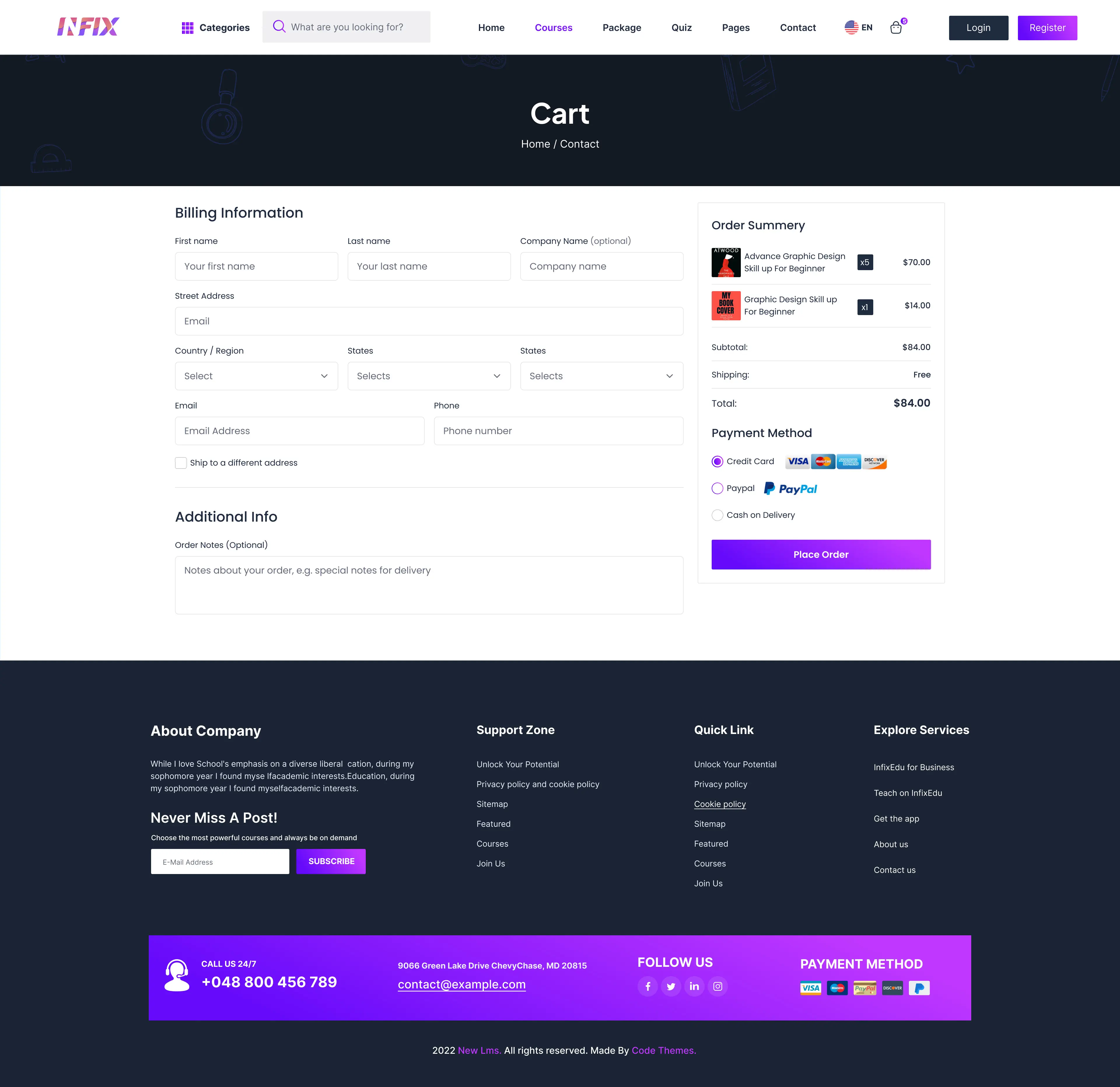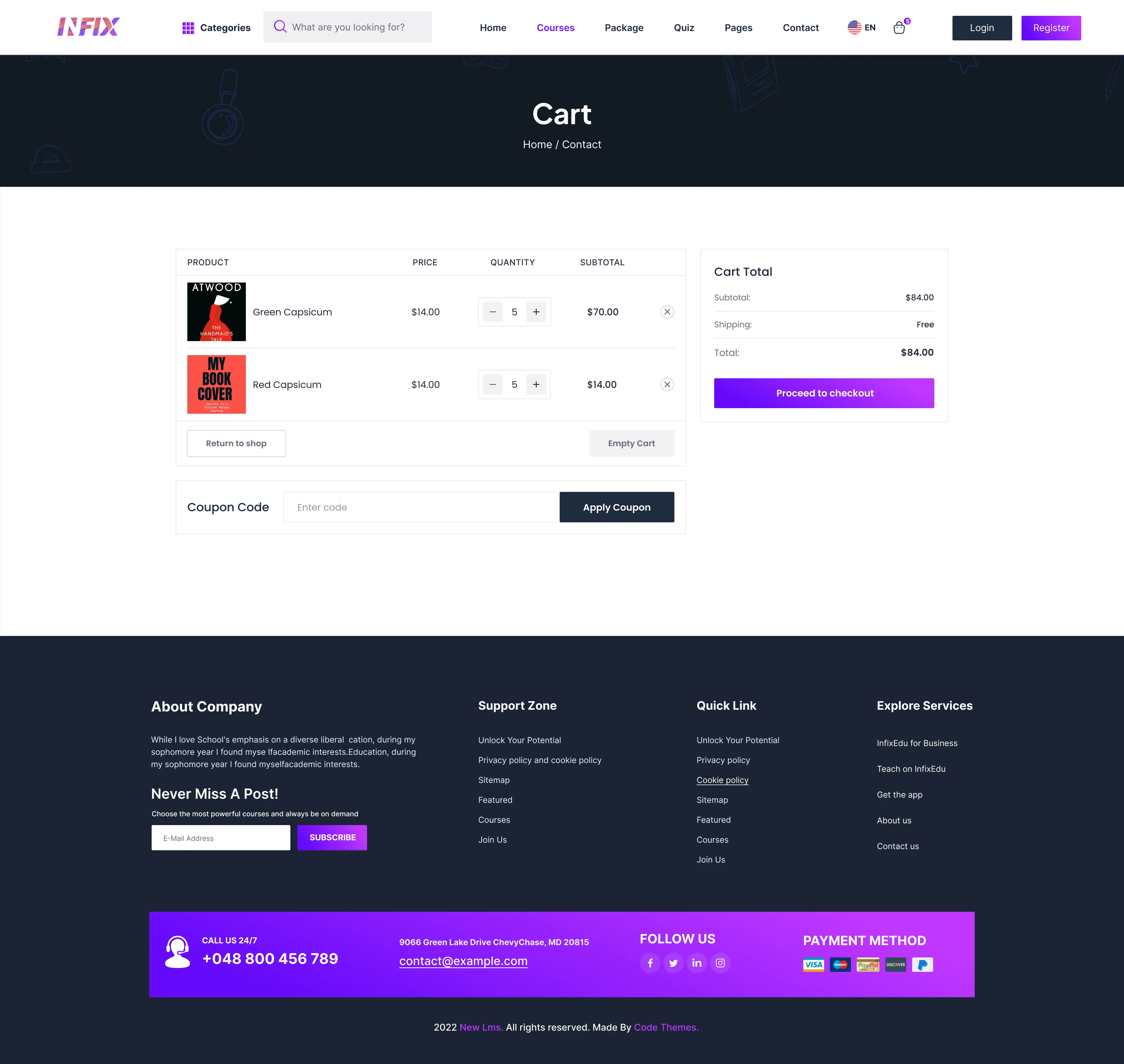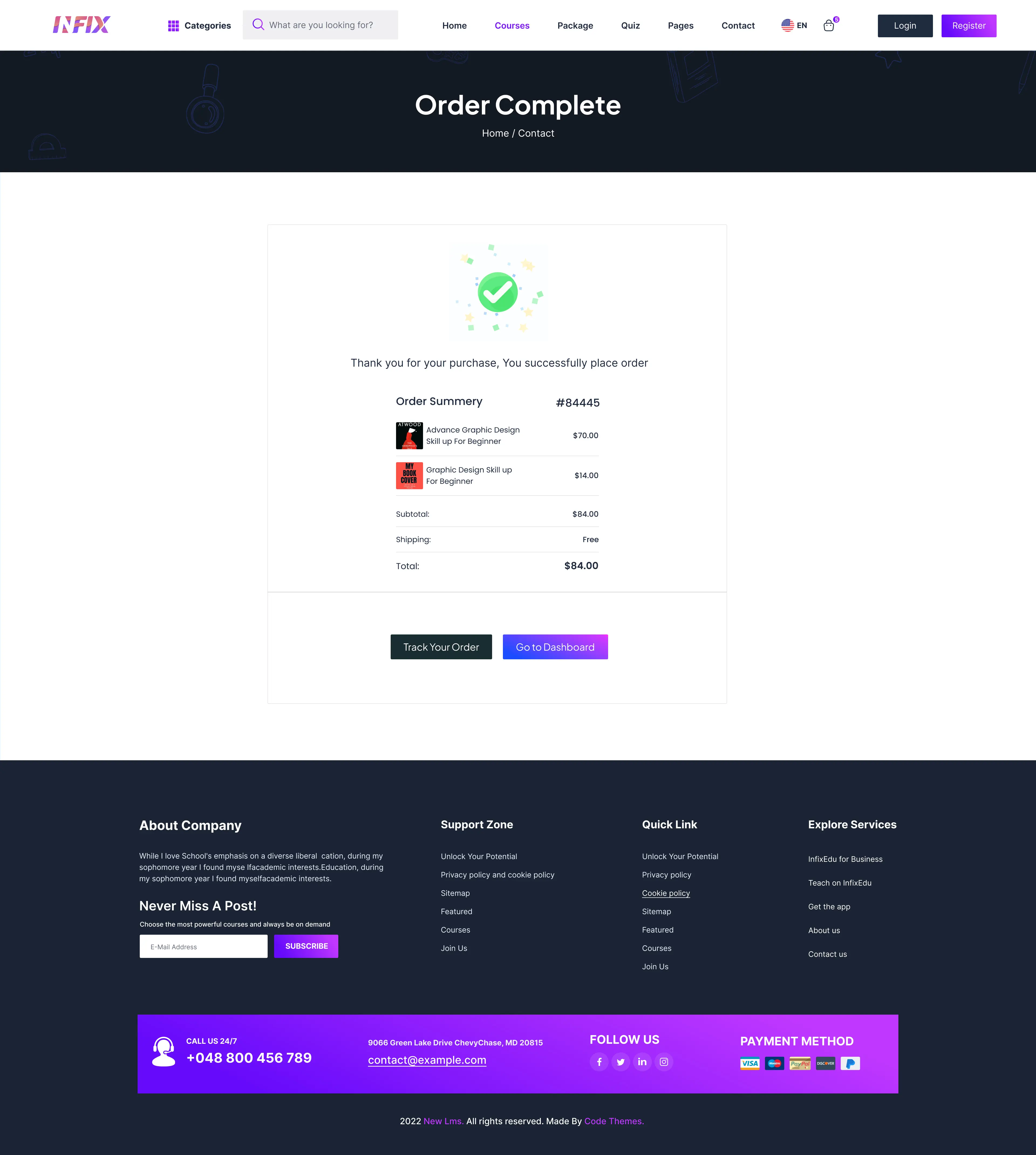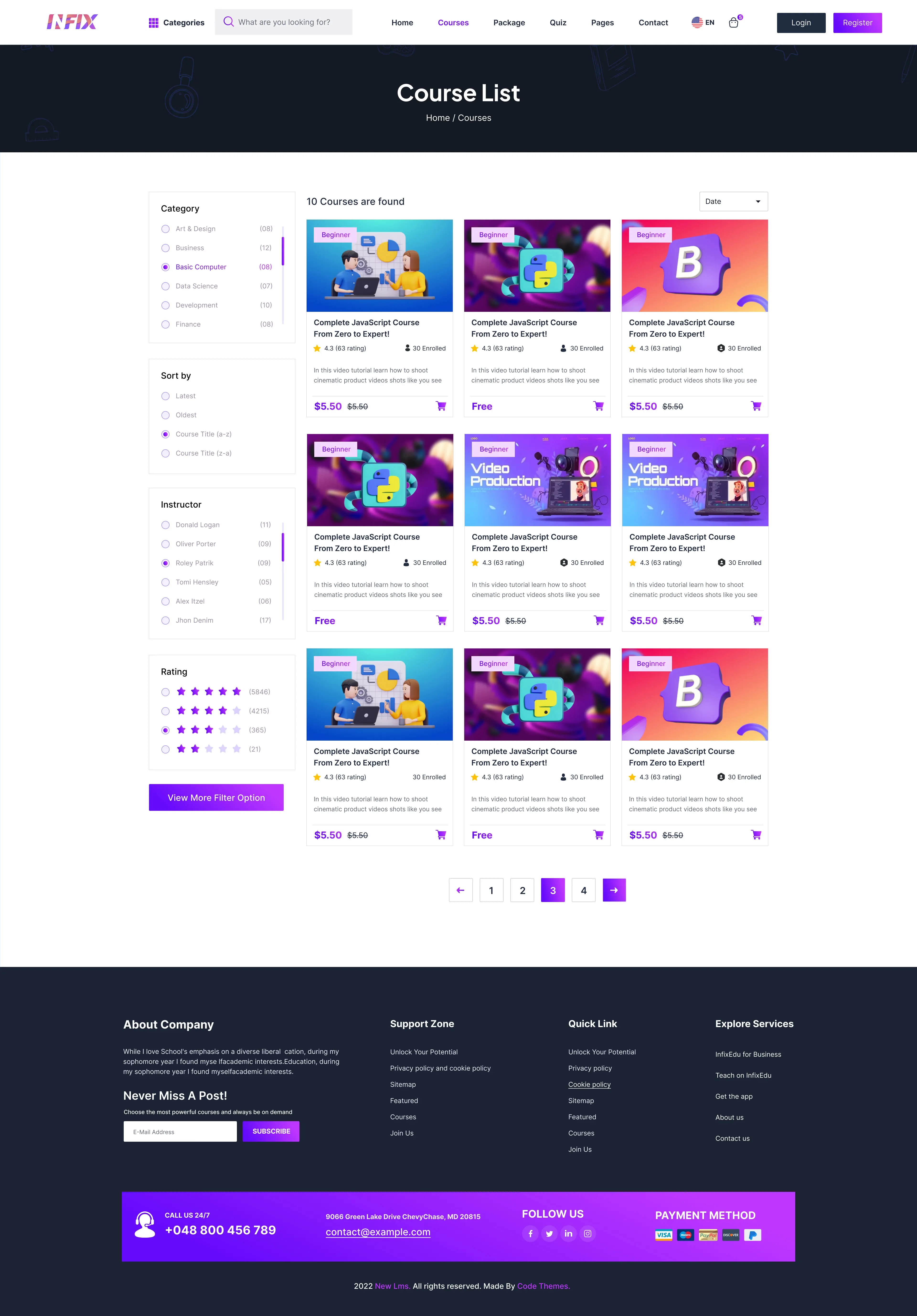 Drag and Drop Page-builder: All of the contents, texts, images, CSS, and JS codes will be customizable from the choice of default theme in InfixLMS.