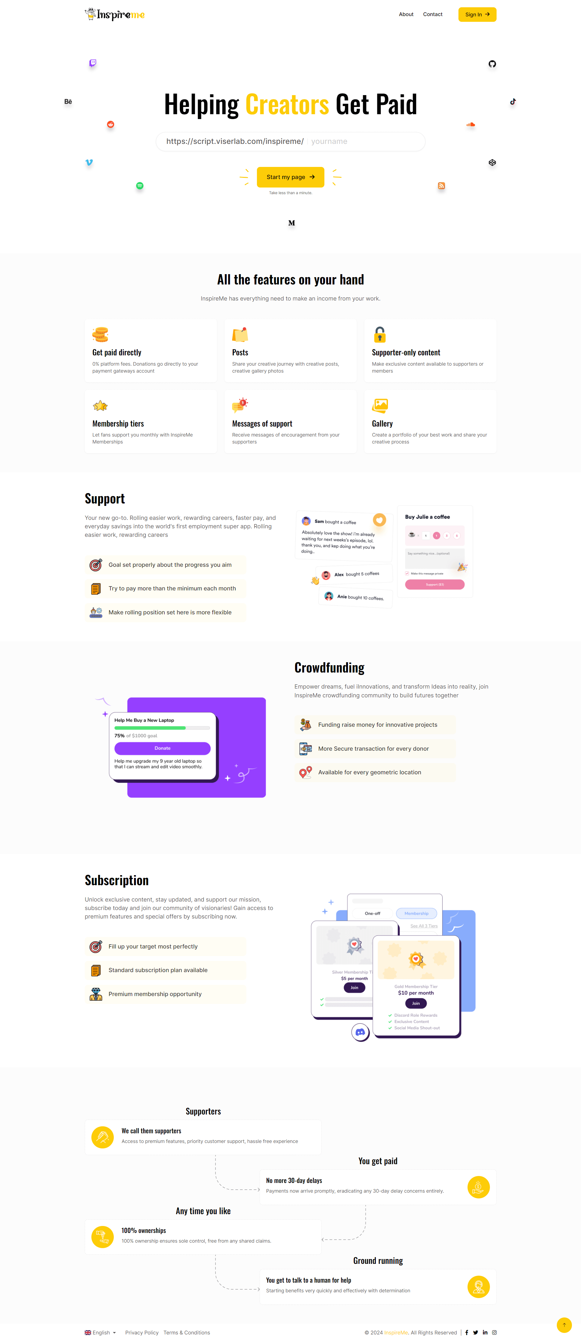 InspireMe is a PHP/Laravel-based script designed to help you quickly build a SaaS-platform oriented around “creative work,” inspiration, curation, collaboration, etc.