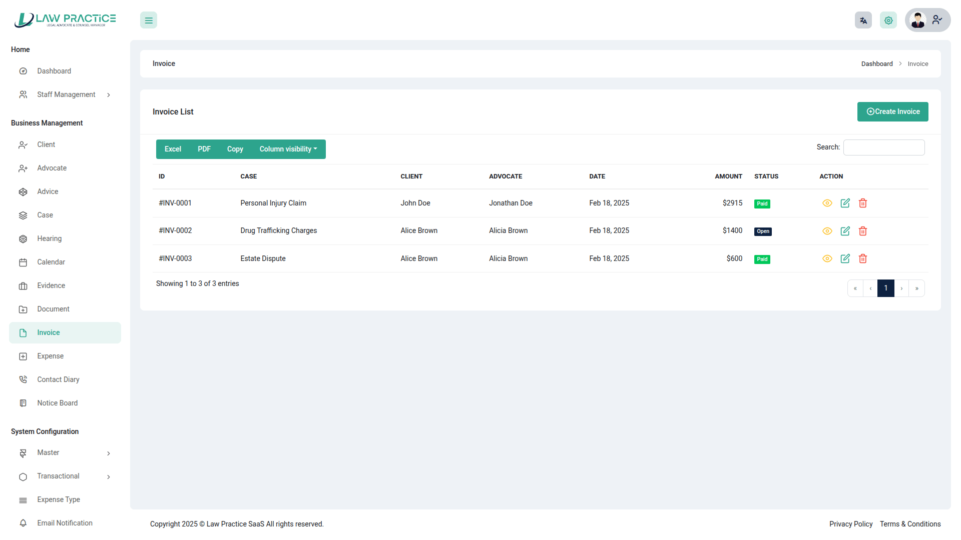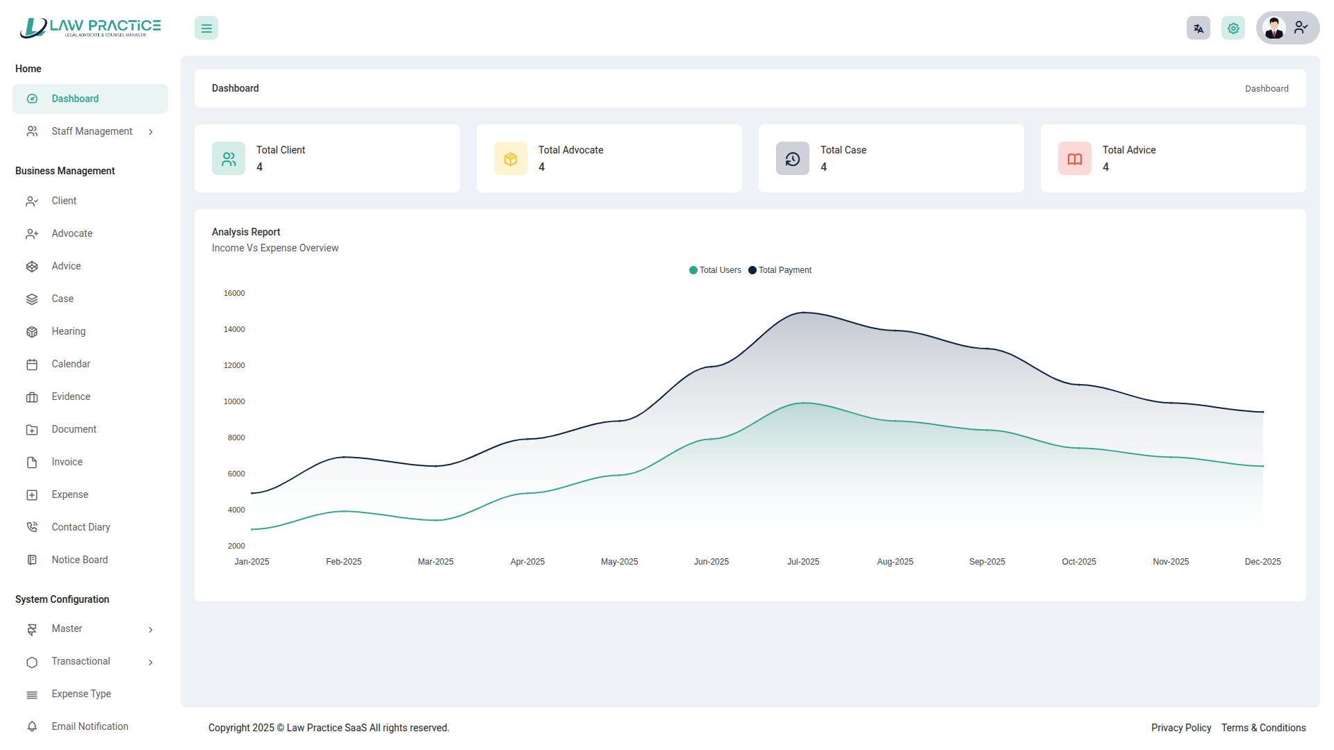 Law Practice SaaS – Legal Advocate & Counsel Manager is a comprehensive, cloud-based platform designed to streamline case management, client intake, legal workflow automation, and document handling for law firms, advocates, and legal consultants. The system centralizes all core operations, including matter management, court date scheduling, client communication, billing & invoicing, document drafting, digital case files, time tracking, and task workflows. With secure data storage, role-based access control, and integrated legal templates, Law Practice SaaS enhances productivity, reduces administrative burden, and improves client service delivery. Ideal for solo attorneys, law firms, legal departments, and consultancy chambers seeking a scalable and efficient legal management solution.