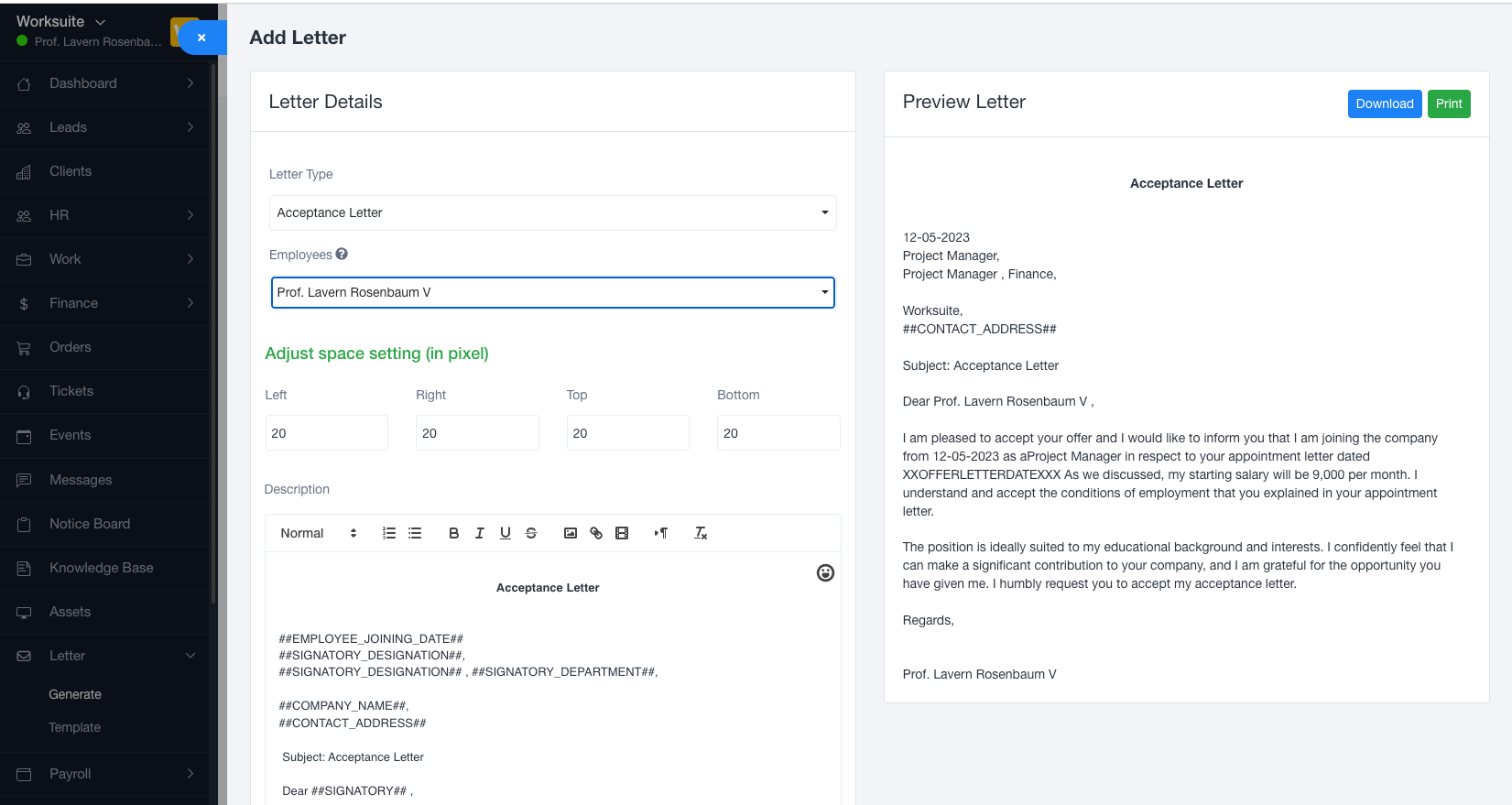 Note: Please note that the Letter Module is not a standalone product and is only compatible with Worksuite CRM version 5.3.81 or newer.