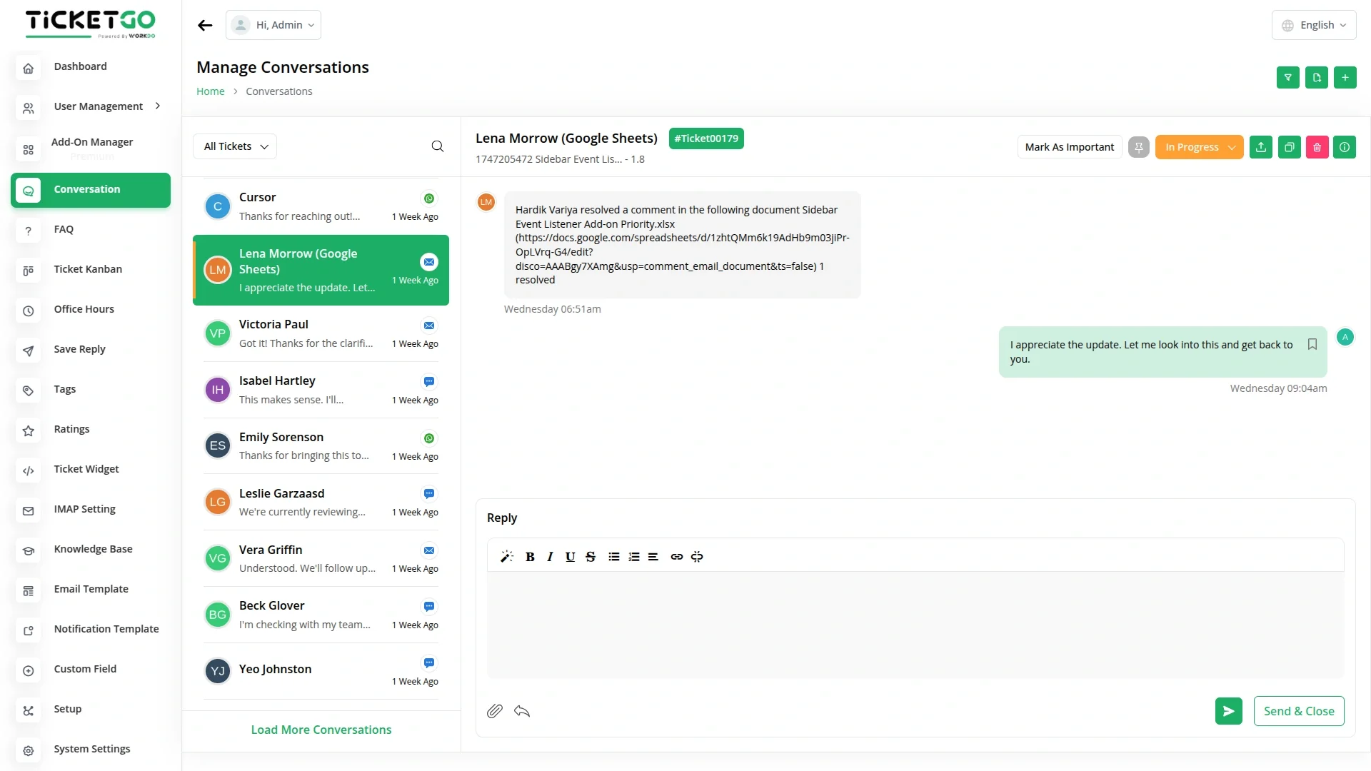 With Mail2Ticket, managing customer emails becomes much easier. As soon as a customer sends an email to your support address, the system automatically turns it into a support ticket. These tickets are then added directly to the conversation page, where the assigned users can easily reply to that ticket. It also helps you avoid problems like missing important emails or accidentally replying to the same message twice. Every customer message is tracked properly, so nothing slips through the cracks, and every inquiry gets a timely and professional response.