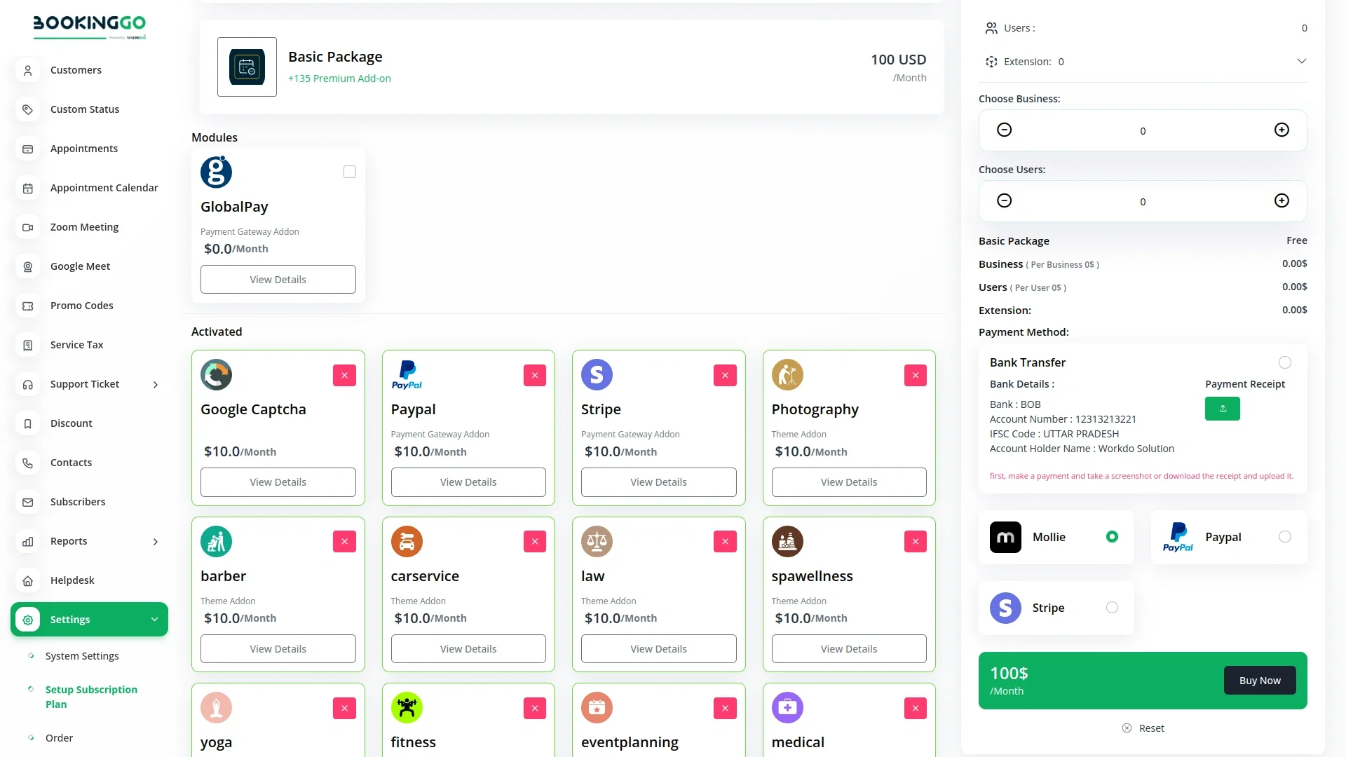 Note: This is an addon for WorkDo BookingGo SaaS - Multi Business Appointment Booking and Scheduling, not a standalone script.