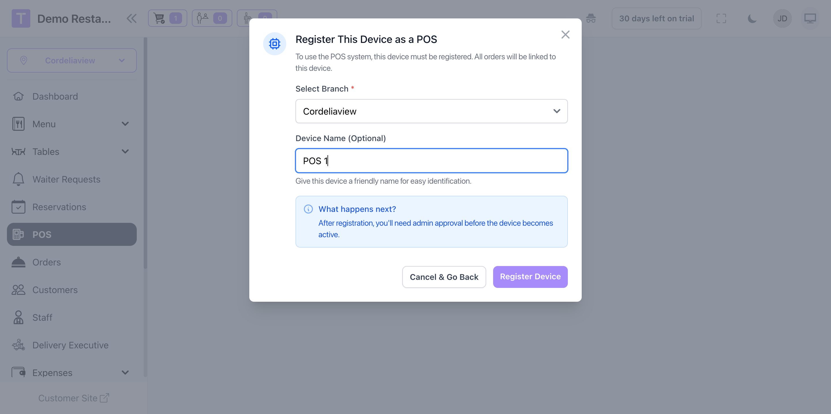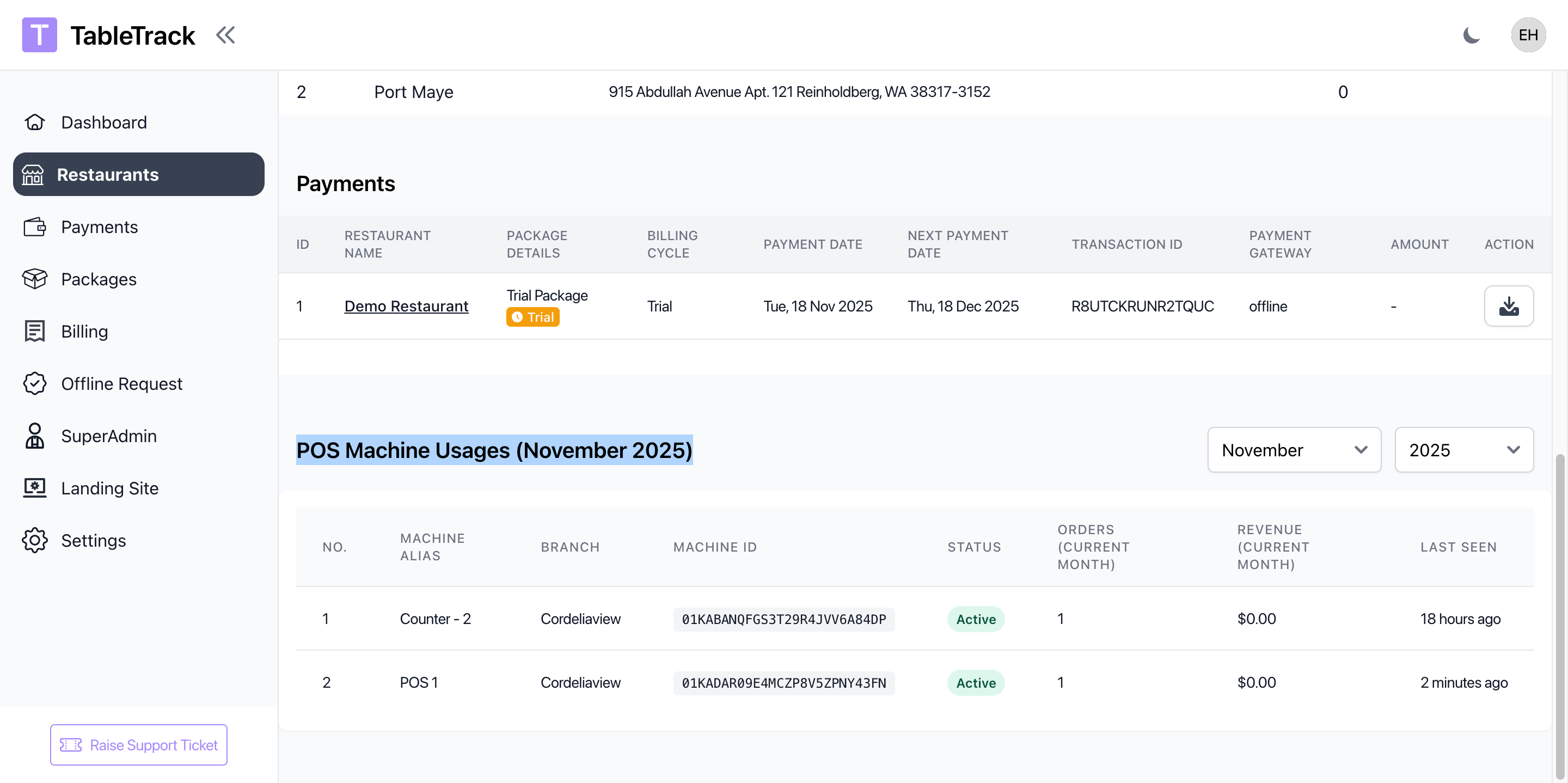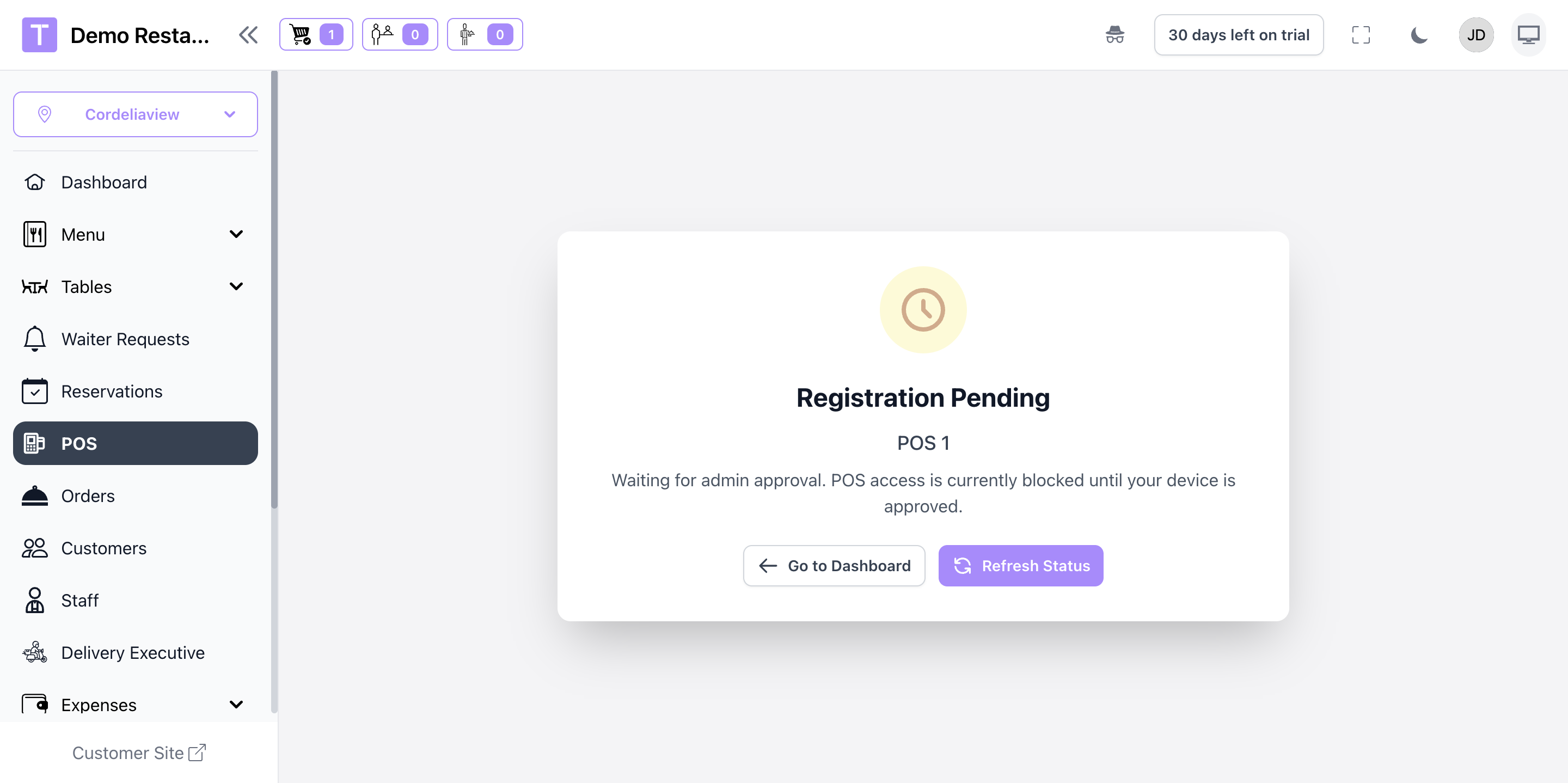 The MultiPOS Module lets restaurants register and manage multiple POS devices from one centralized dashboard. Track sales and performance for each device, Approve or reject new device registrations, and access detailed machine-wise reports. Ideal for restaurants using multiple terminals across branches or service areas