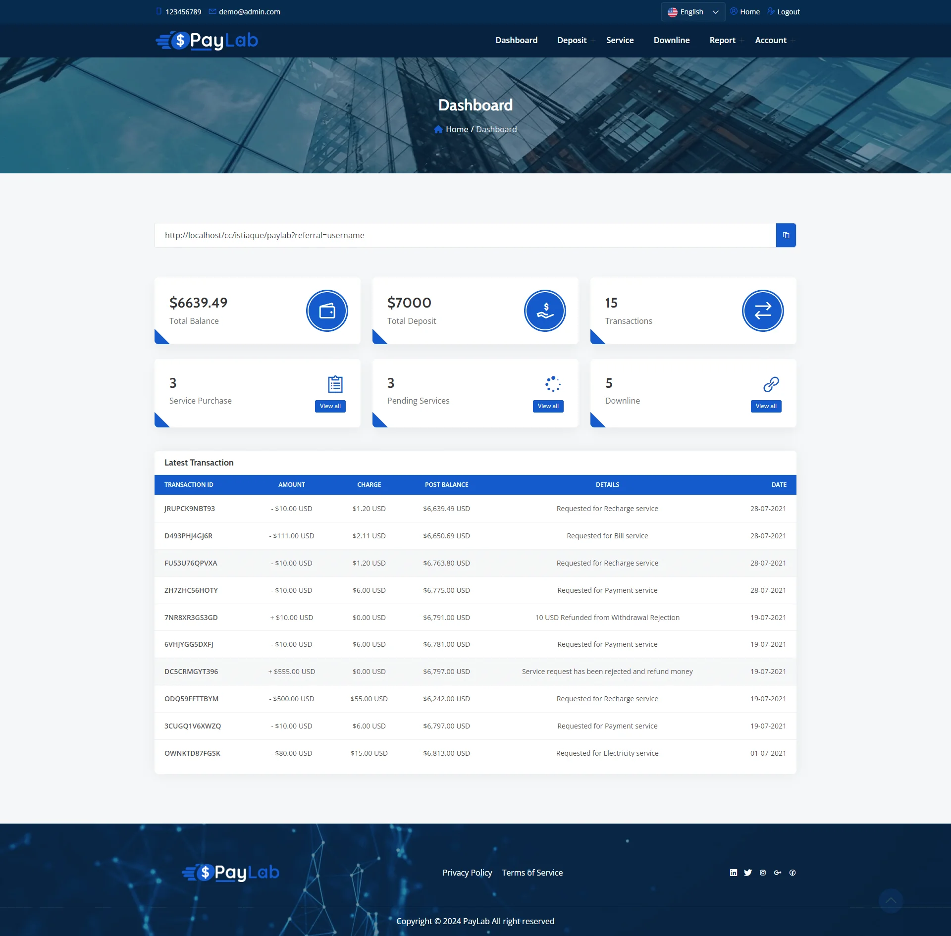 Are you looking for a complete Online recharge system for your business, then you are in the right place. No need to pay thousands of dollars to hire developers to build your Online recharge website. PayLab may assist you to handle unlimited users, categories, services, recharge requests, able to accept payment via cards, cryptos, and mobile money. the ready-to-go solution, takes only a few minutes to set up your website with our system. we also here to provide you best support, installation, and customization.