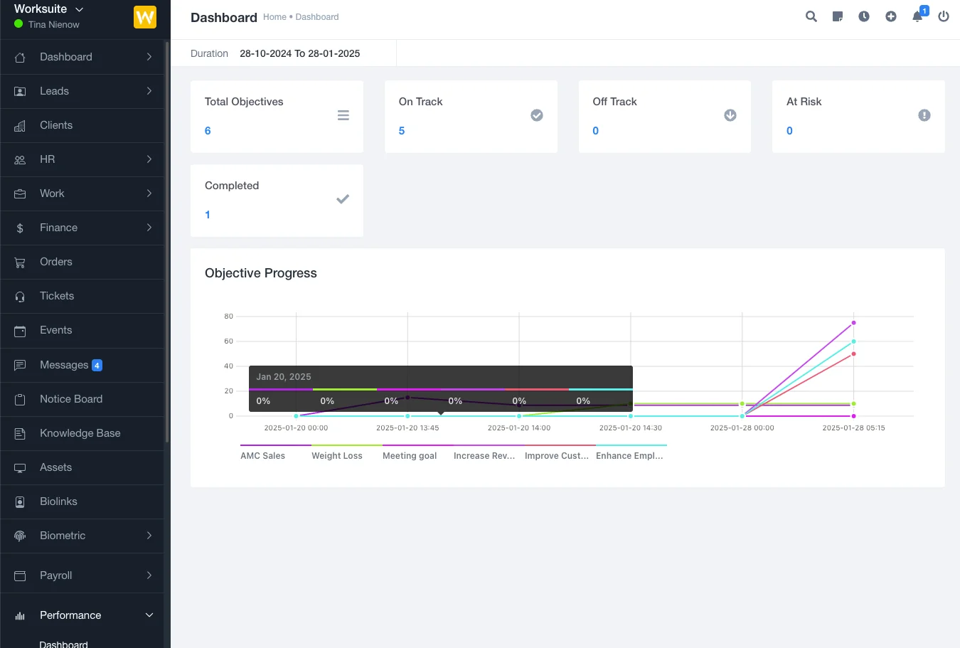 The Performance Module is an extension/add‑on for Worksuite SAAS CRM that enhances the platform with employee and team performance tracking tools. It integrates into the CRM (built on Laravel) and provides dashboards, goal‑setting frameworks, and reporting features — mainly based on Objectives and Key Results (OKRs) to help monitor and evaluate performance across your organization.