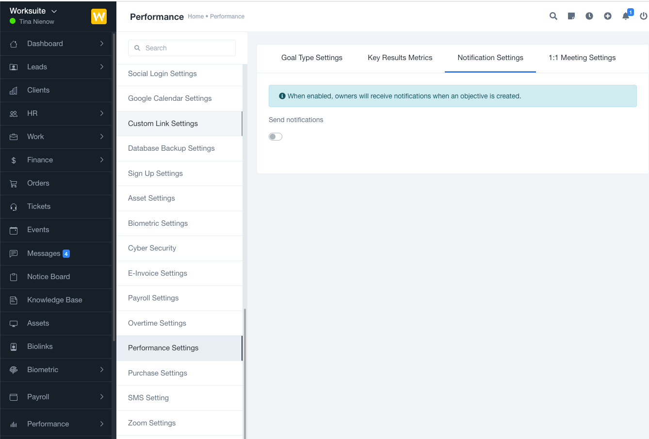 Note: Please note that the Performance Module is not a standalone product and is only compatible with Worksuite SAAS CRM version 5.4.8 or newer.