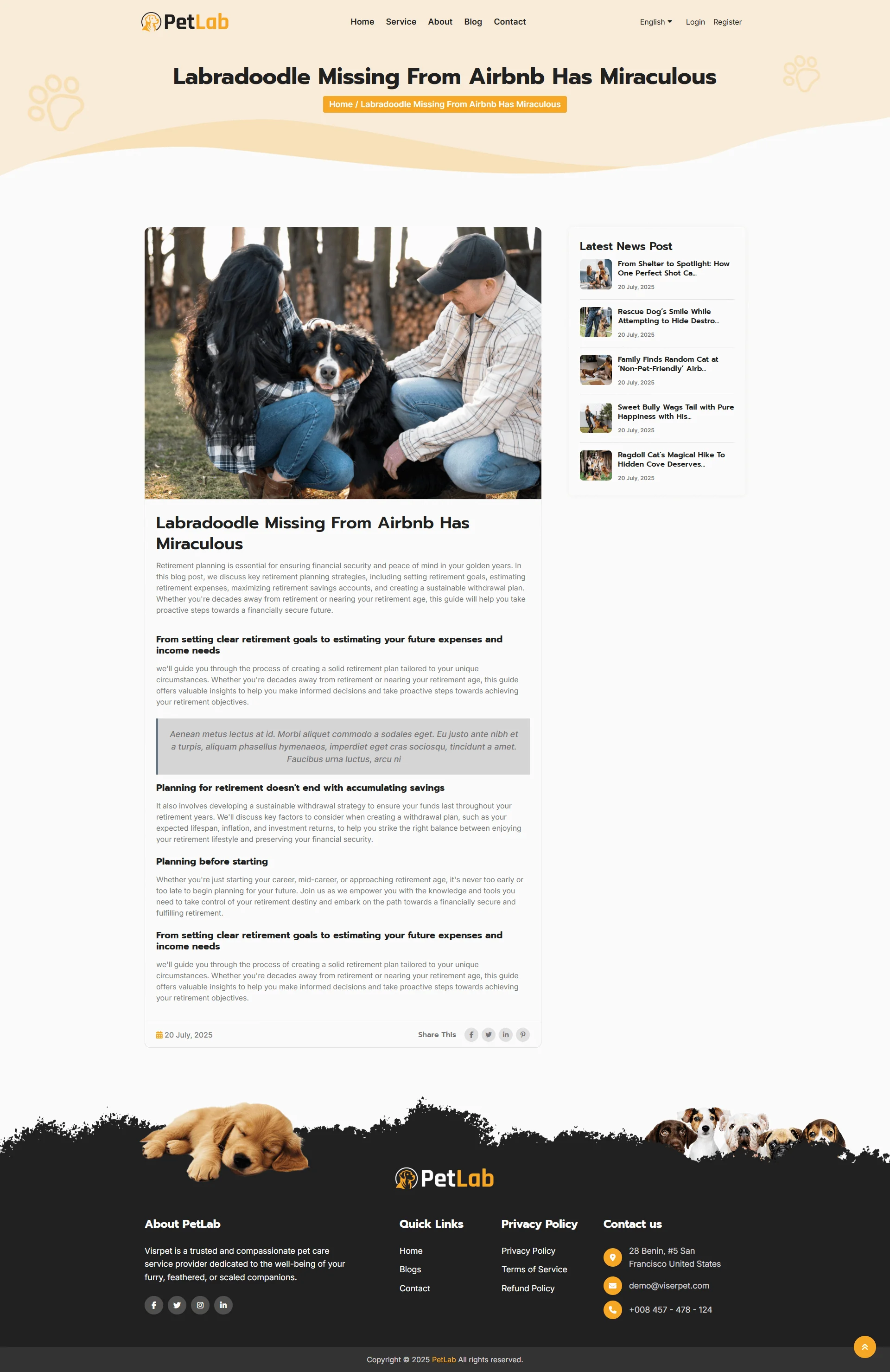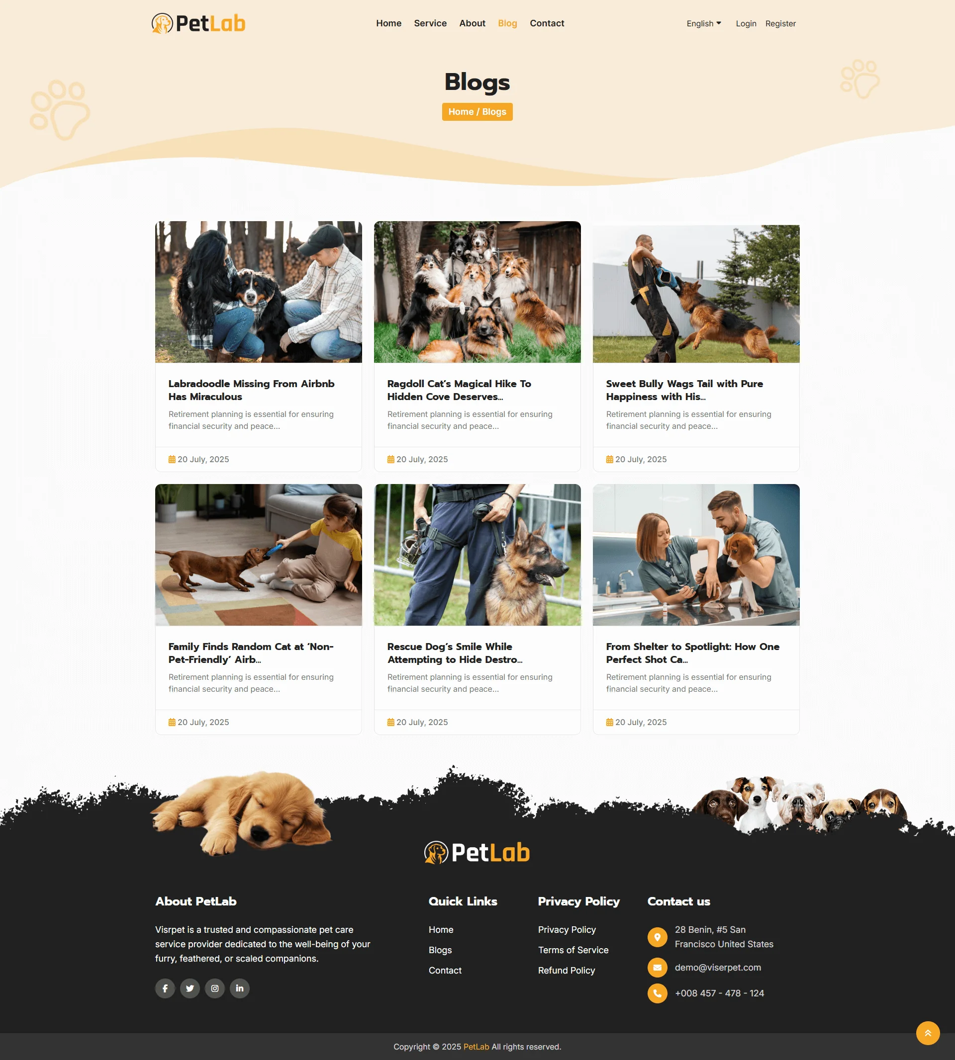 PetLab is the first-ever on-demand Pet Walking Service platform available on CodeCanyon. It allows pet owners to hire professional dog walkers online to walk their pets, especially helpful for those with busy schedules or physical limitations. Through PetLab, pet owners can easily book daily or scheduled walks, leash training and exercise sessions, potty breaks, and even feeding or watering services. The platform is fully optimized for all modern devices and browsers, includes 30+ integrated online payment gateways, transaction logs, seamless online hiring, and much more. providing a complete solution for pet care on the go.