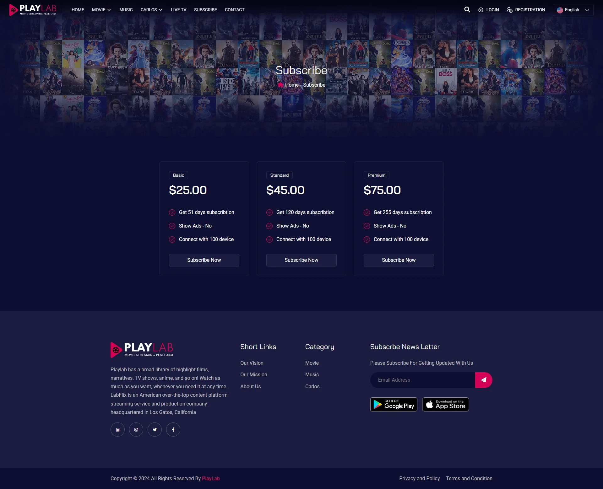 PlayLab is a comprehensive, feature-rich movie streaming platform that allows you to build your own on-demand service with ease. Offering seamless video playback, free and paid content, secure subscription options, 30+ payment gateways, and integration with Digital Ocean, Wasabi and FTP for storage, PlayLab is fully customizable. With a modern user interface, responsive design, multi-language support, and admin control features, it’s a perfect solution for creating a high-quality streaming service like Netflix or Prime Video.