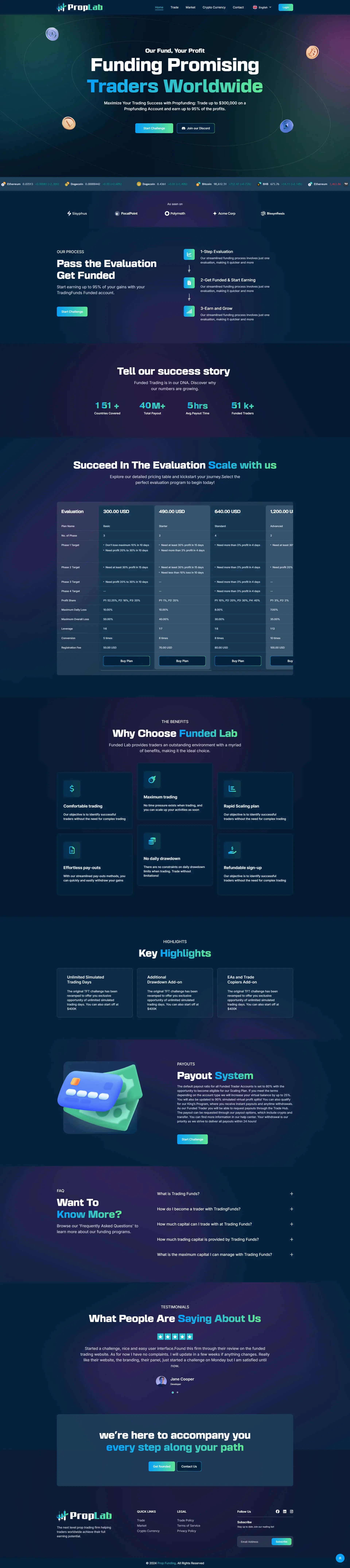 PropLab empowers trades to reach new heights and expand their reach, offering everything needed for a vibrant and successful online presence. No Monthly Fees, No Hidden Charges, and No Encryptions. PropLab offers lifetime access at an affordable price. PropLab equips you with all the essential features to offer a fair, transparent, and efficient Brand And trading experience, helping you develop the next generation of smart and easy Funded Trading platforms.