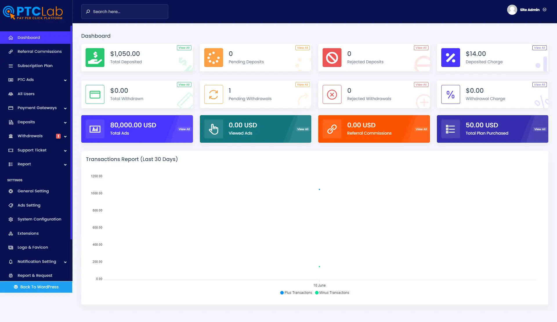 PTCLab is a powerful and flexible Pay-Per-Click (PPC) management plugin for WordPress that enables website owners, publishers, and advertisers to create, manage, and monetize PPC advertising campaigns directly on their sites. Designed for simplicity and performance, PTCLab provides all the tools you need to run your own ad network, increase revenue, and maintain full control over your advertising ecosystem—without relying on third-party platforms.