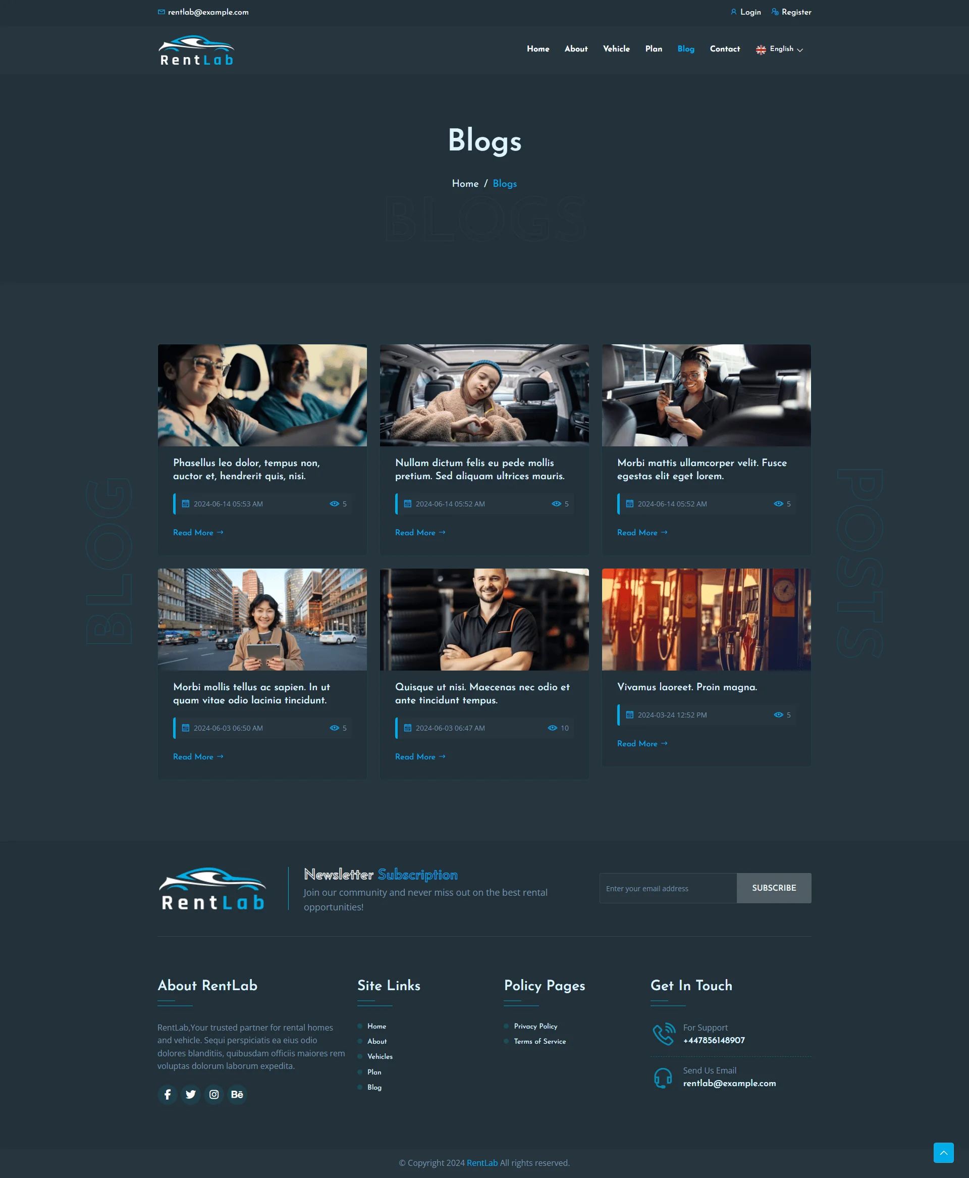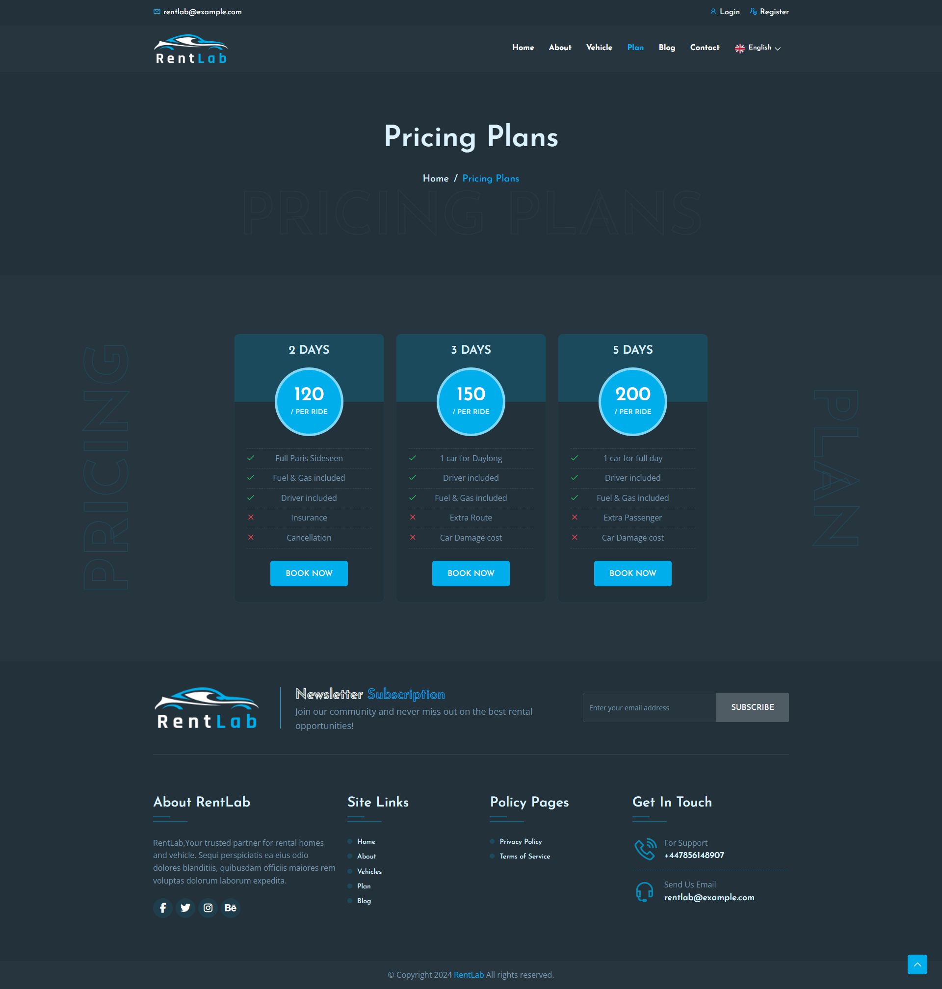 RentLab is an intuitive and user-friendly vehicle listing application featuring dynamic front-end and back-end capabilities. The site boasts a clean, streamlined design, making it easy for users to search for and book their desired vehicle effortlessly. It supports listings for all types of vehicles, including cars, buses, trucks, pickups, and vans. As vehicle listing platforms continue to grow in popularity, we strive to meet all our users’ needs. RentLab offers comprehensive features such as plan-based booking options, full management tools, SEO optimization, multi-language support, LiveChat, a plugins manager, and more.