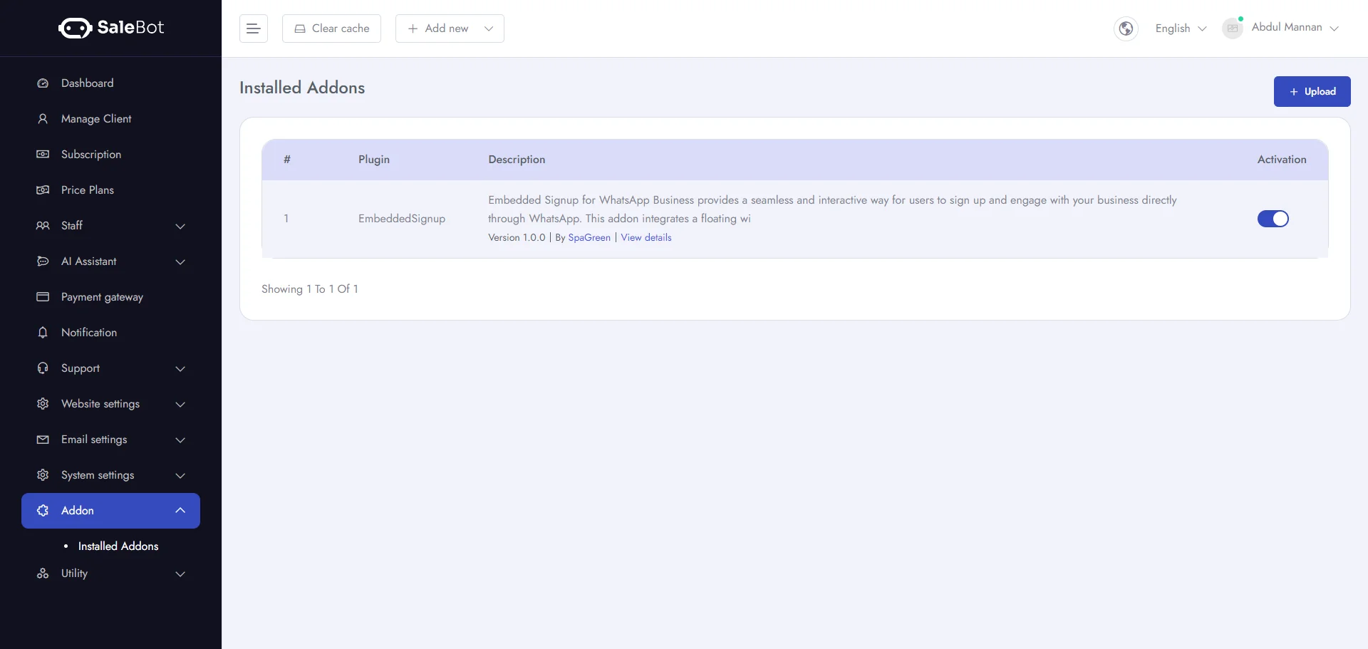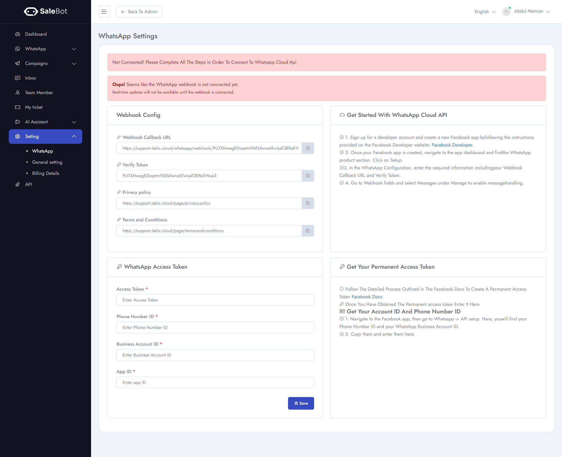SaleBot WhatsApp Embedded Signup Add-on isn’t a standalone system. This SaleBot WhatsApp Embedded Signup Add-on is available only for SaleBot – WhatsApp And Telegram Marketing SaaS – ChatBot & Bulk Sender . If you do not purchase SaleBot – WhatsApp And Telegram Marketing SaaS – ChatBot & Bulk Sender yet then click here for purchasing.