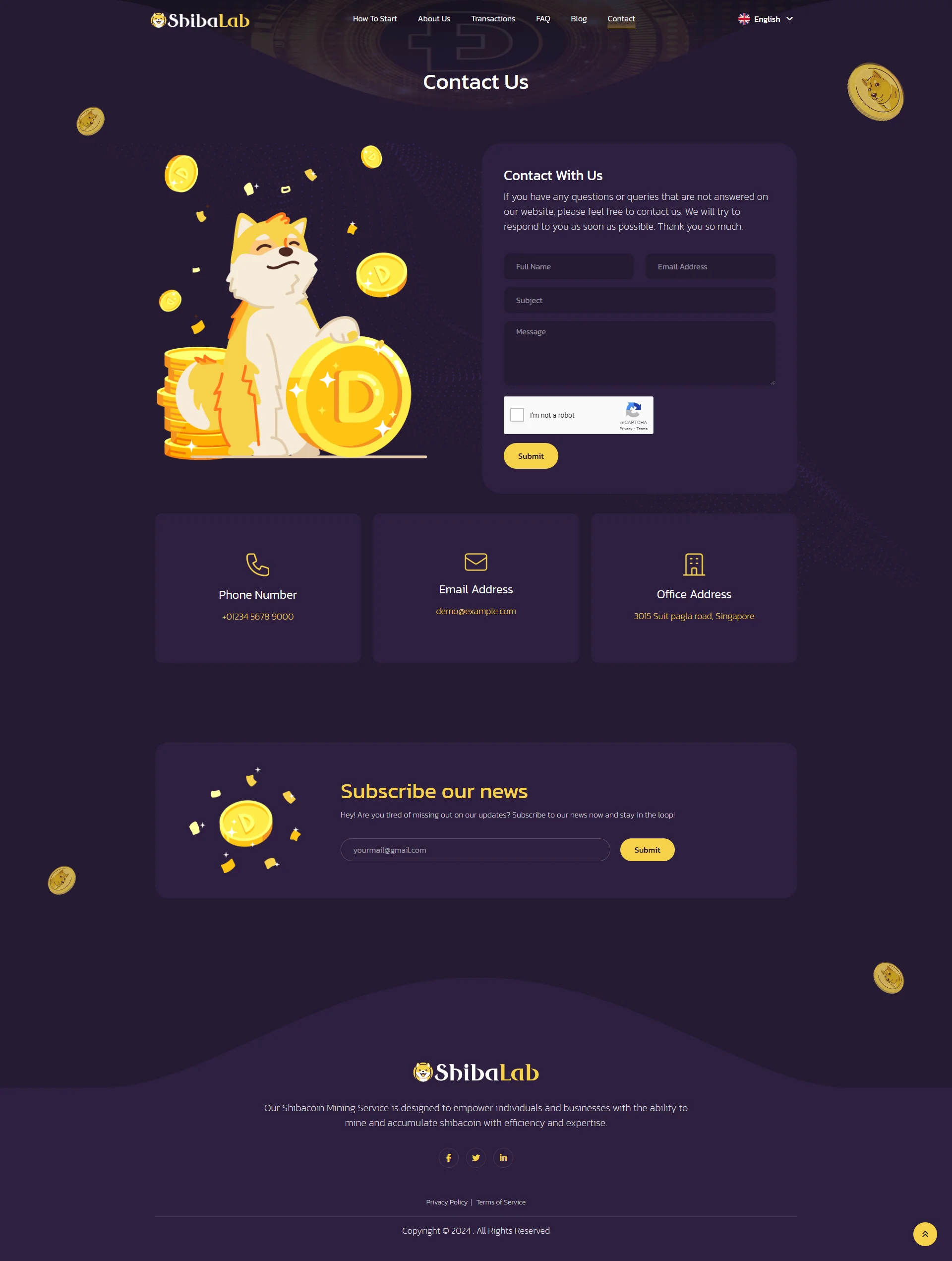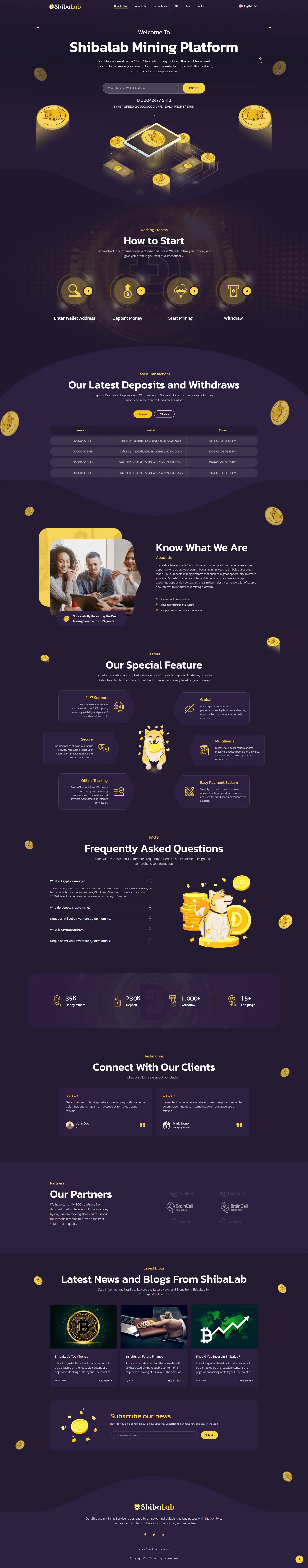 ShibaLab is a comprehensive, ready-to-deploy cloud-mining platform built with the Laravel PHP framework, designed for entrepreneurs who want to launch a branded platform that allows users to “mine” the meme-cryptocurrency Shiba Inu (SHIB).