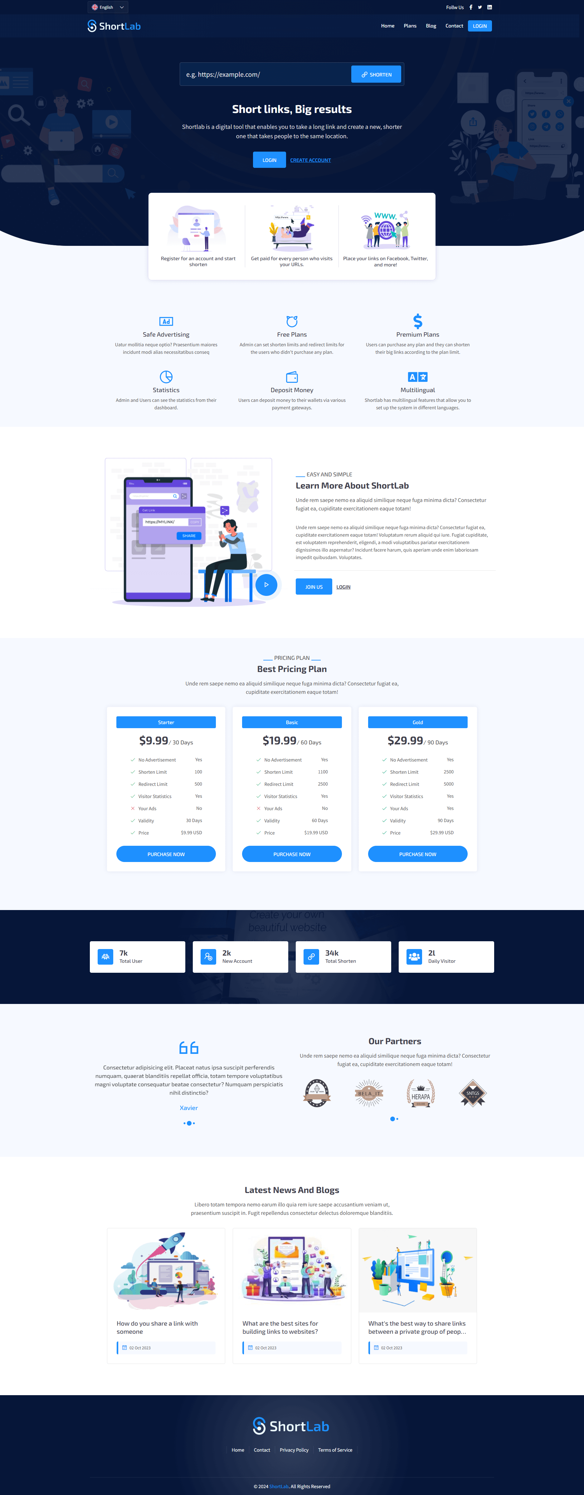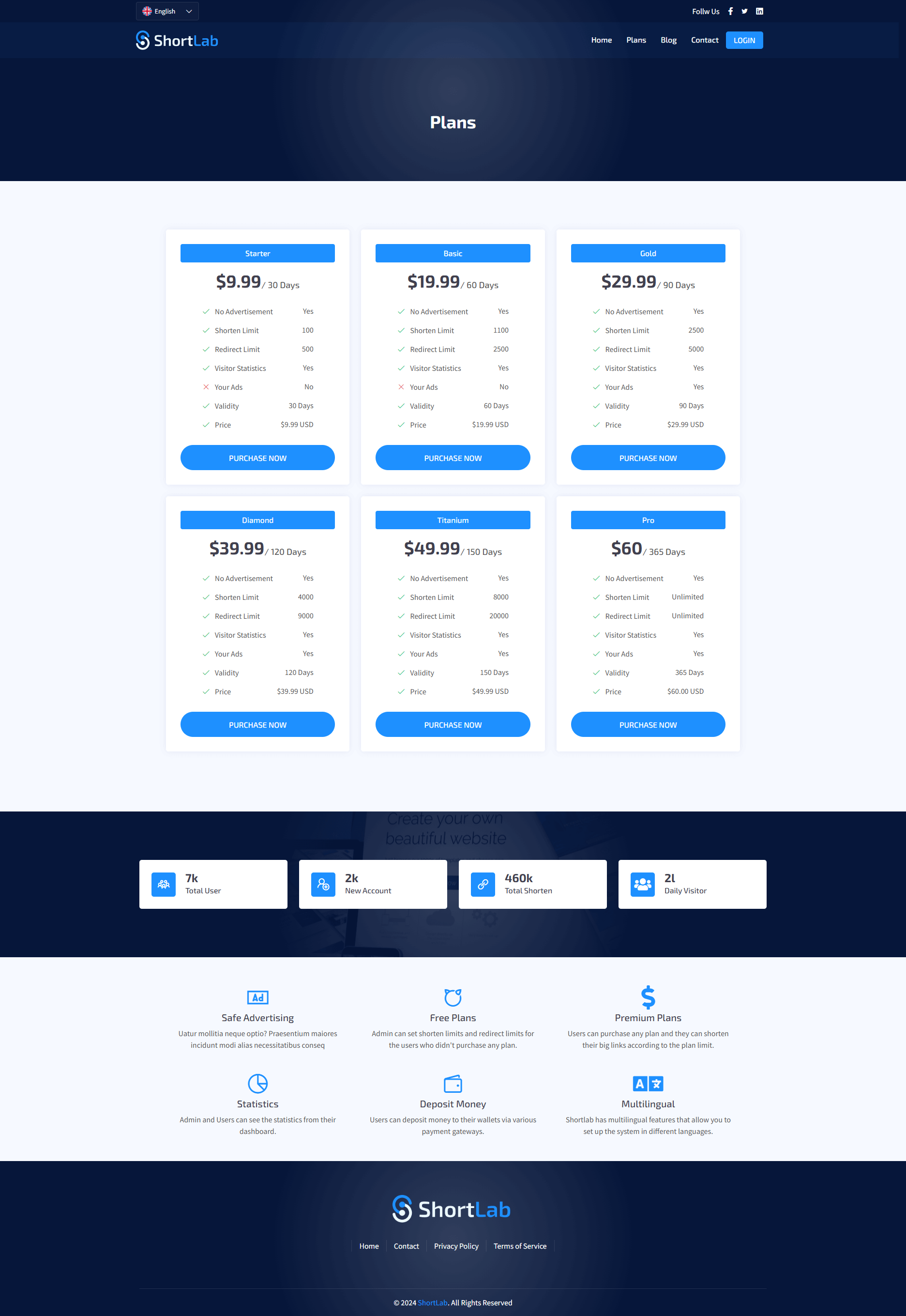 If you’re in search of a complete URL shortening system for your business, you’ve come to the right place. No longer do you need to invest substantial sums in hiring developers to construct your own short URL website. ShortLab can assist you in managing an array of short links, users, traffic, advertisements, support frames, countdown timers, and facilitate payment acceptance through credit cards, cryptocurrencies, and mobile money. This ready-to-deploy solution allows you to set up your website within minutes. Moreover, we’re here to offer you top-notch support, installation, and customization should you require it. Don’t wait any longer; secure your copy now and launch your URL shortening website.