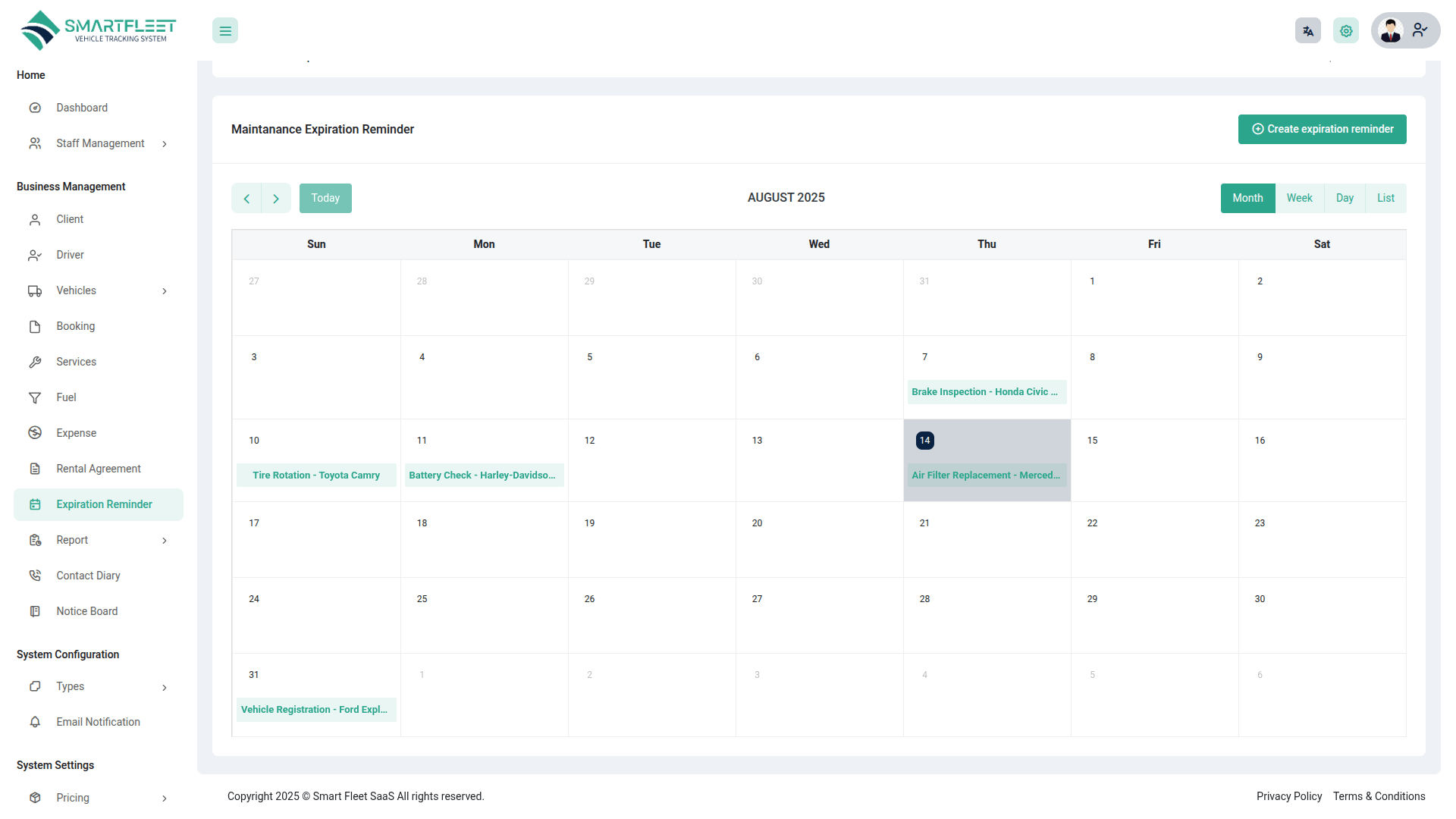- Vehicle Maintenance Expiration Reminder Calendar