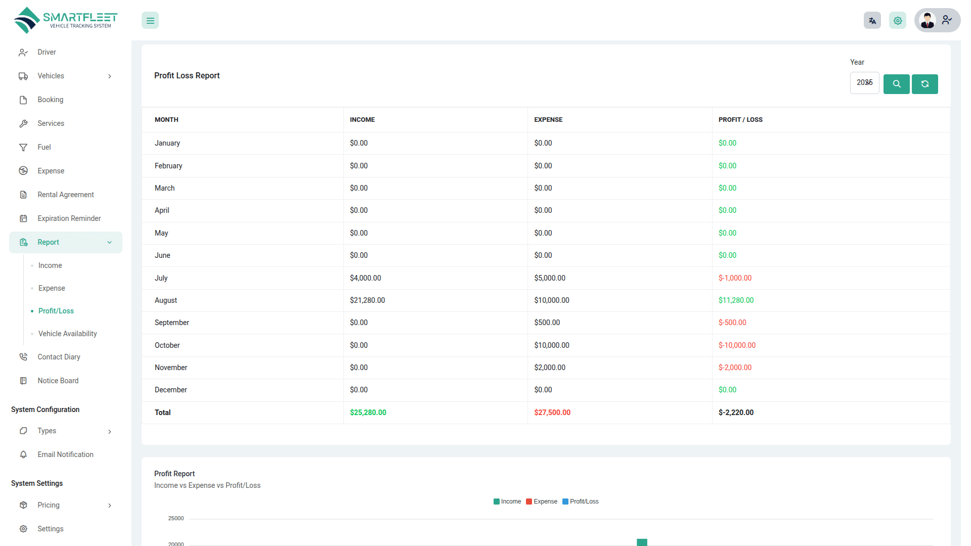 - Report Module: Invoice, Expense, Vehicle Availability, Profit & Loss