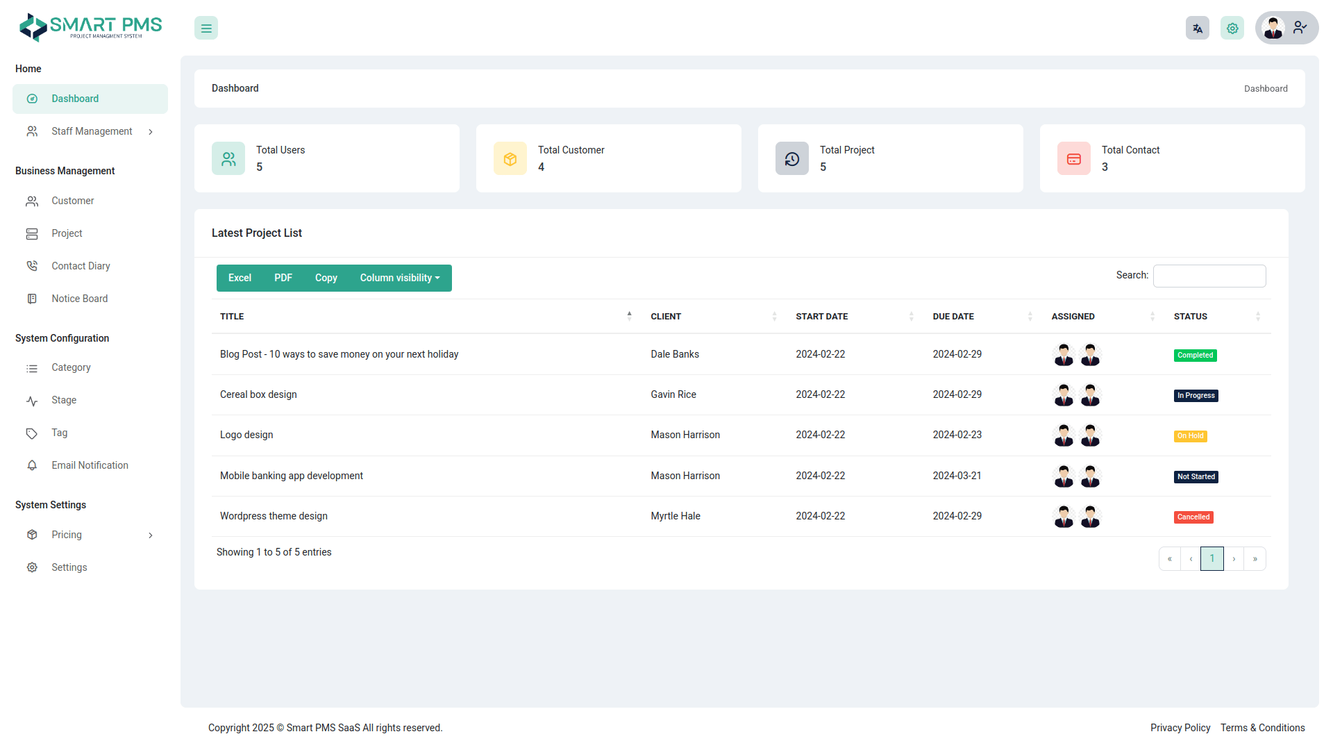 Smart PMS is a Well Designed Project & Task Management System that gives your client the ability to manage and create project & task.With a Saas version create subscriptions using super admin login.