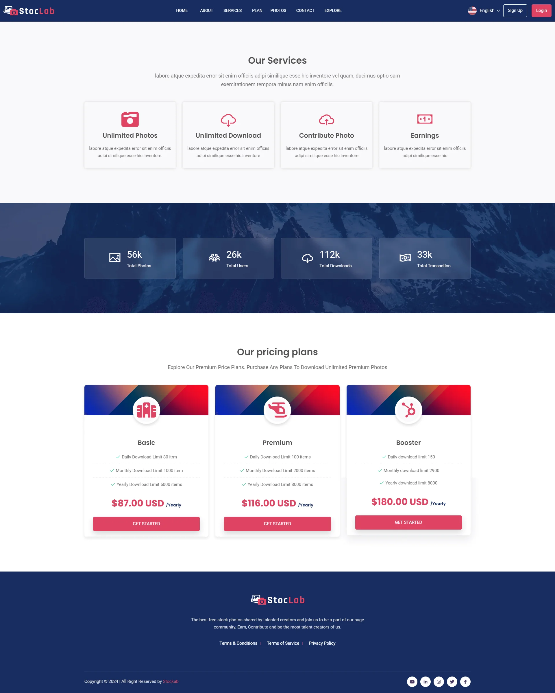 StocLab is a very easy and advance Microstock photo sharing application that has dynamic frontend and backend features. comes with Subscriber package, Contributor Access, and Reviewer panel to Review photos which is submitted by a contributor. The site is very secure, responsive, clean and the process is very user-friendly. there is an admin panel, admin able to handle all sites, lots of payment gateways, SEO manager, Plugins, photos, users, contributors, Reviewers, and more on a more contextual Frontend.