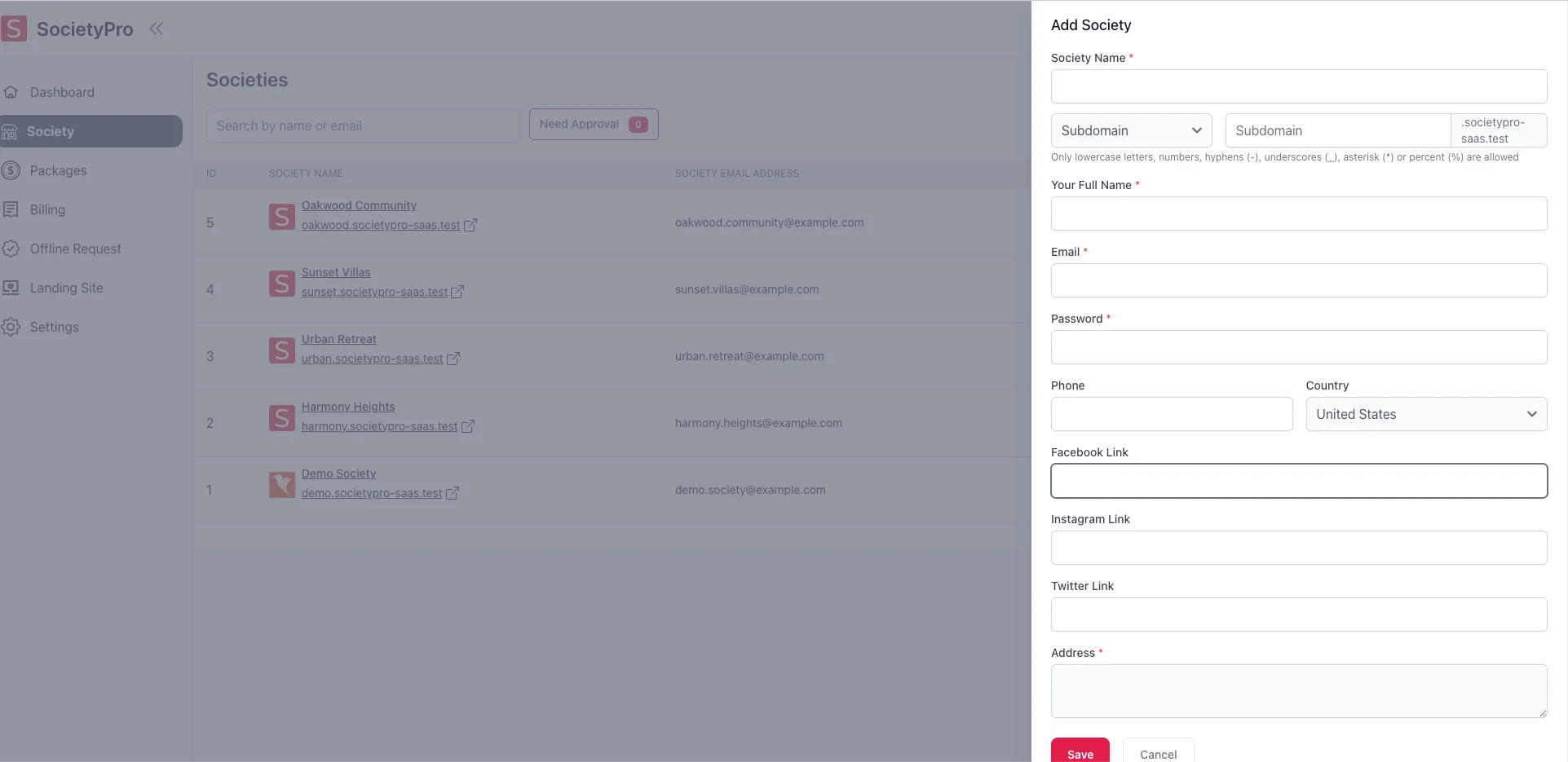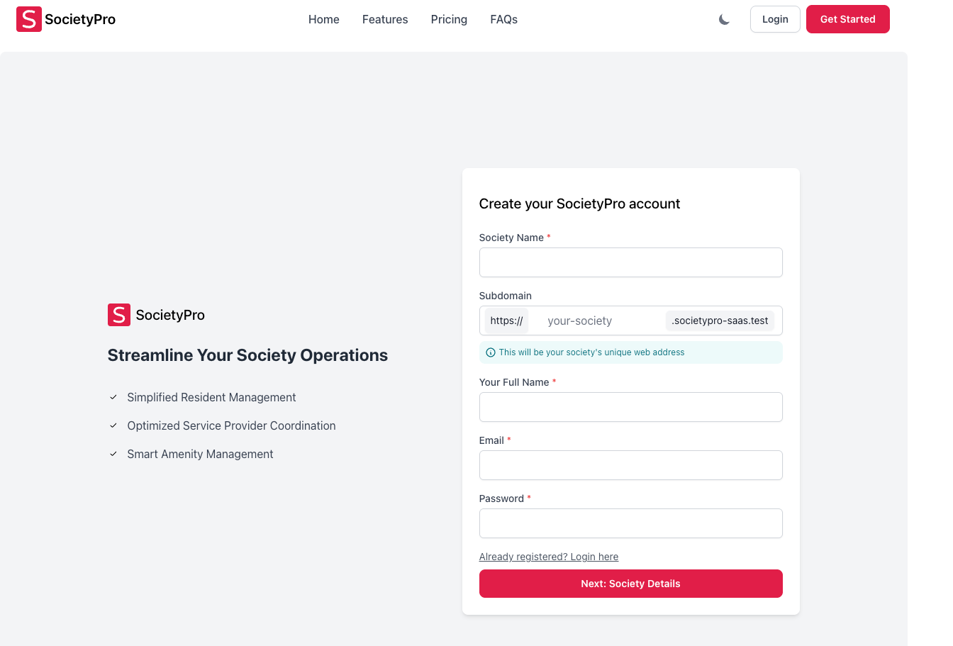 The Subdomain Module allows each society or community on SocietyPro to operate on its own dedicated subdomain, providing a branded, secure, and isolated experience while being managed from a centralized SaaS platform.