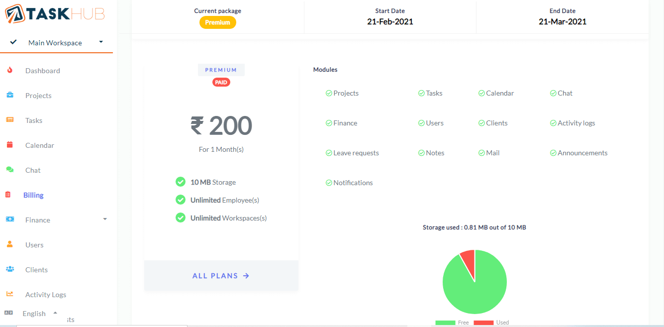 Taskhub SaaS is the modern and powerful tool for your Project Management, Finance & Customer Relationship Management ( CRM ) purposes. This is a SaaS version of our previous successful Taskhub – Project Manager system with new enormous and exciting features to offer to all valuable customers. SaaS version is mainly made for those customers or businesses who are willing to start their own startup or small business which offers a software solution for project management , Tasks Management and CRM solutions to the small, medium or large scale companies or organizations. Explore our demo to check how does everything looks like & work and to find out more details on the features and functionalities proceed below to know more.