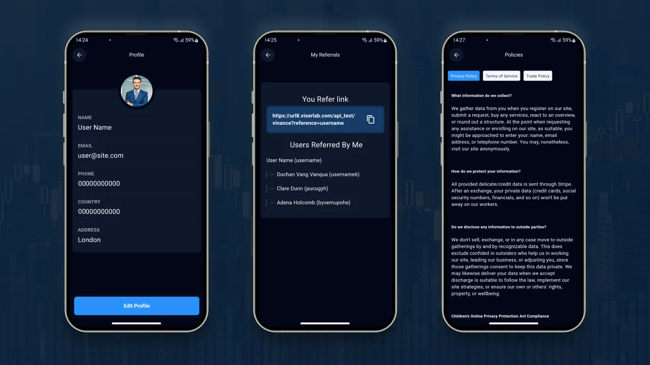With Vinance, there’s no need to spend thousands on hiring developers to build your trading mobile app. Our ready-to-go solution simplifies the process, allowing you to set up your mobile application within minutes. Additionally, our team offers dedicated support, installation, and customization services to meet your needs. Don’t hesitate – grab your copy today and launch your own trading mobile application.