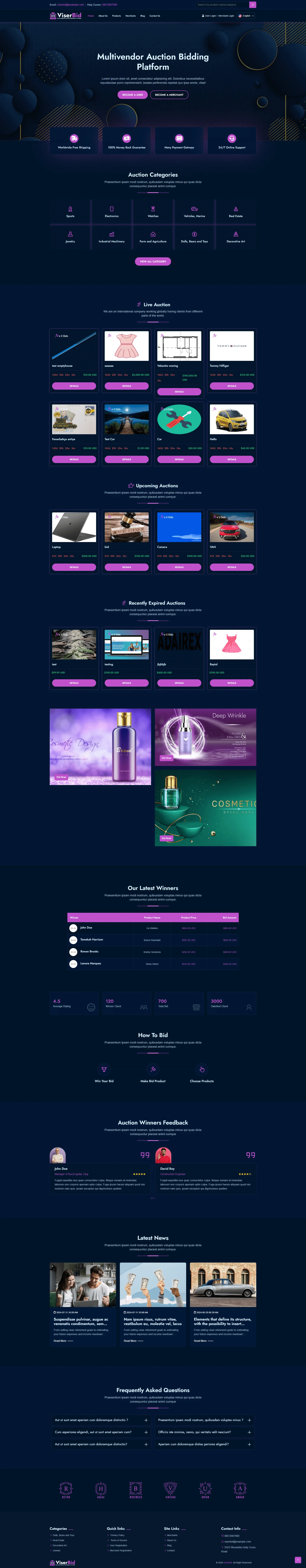 ViserBid is a unique Multivendor Bid and Win platform. You can make real-time transactions whenever and wherever you like. The platform can be accessed not only from a PC but also from a full-service mobile. Its easily installable, controllable through the admin panel, comes with a responsive design, high security, interactive User interface. support plugins, LiveChat, Google ReCaptcha, analytics, automatic payment gateway, cards, currencies, and cryptos.