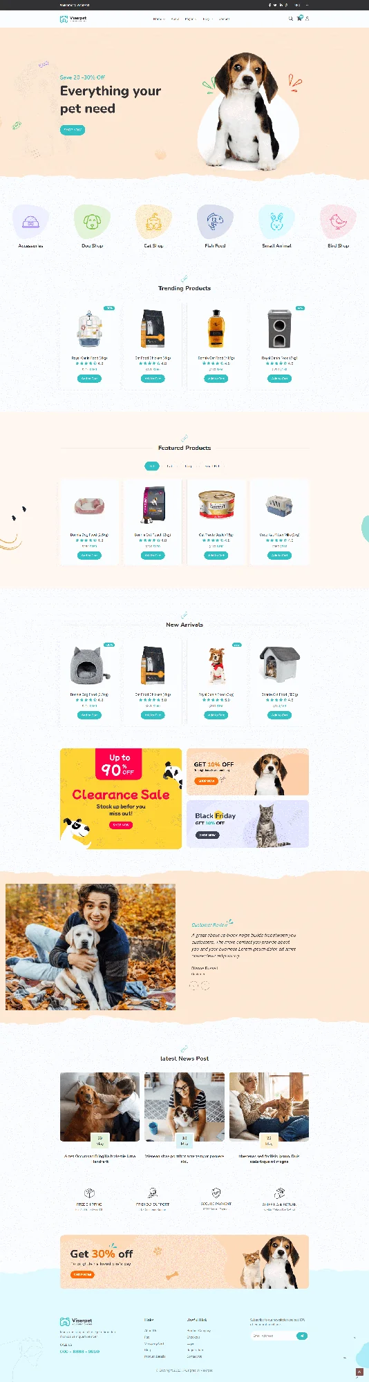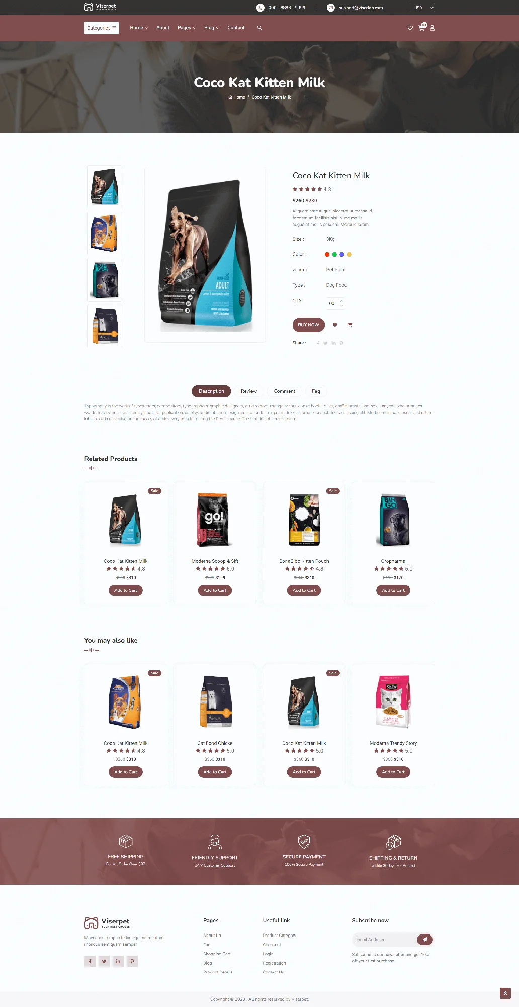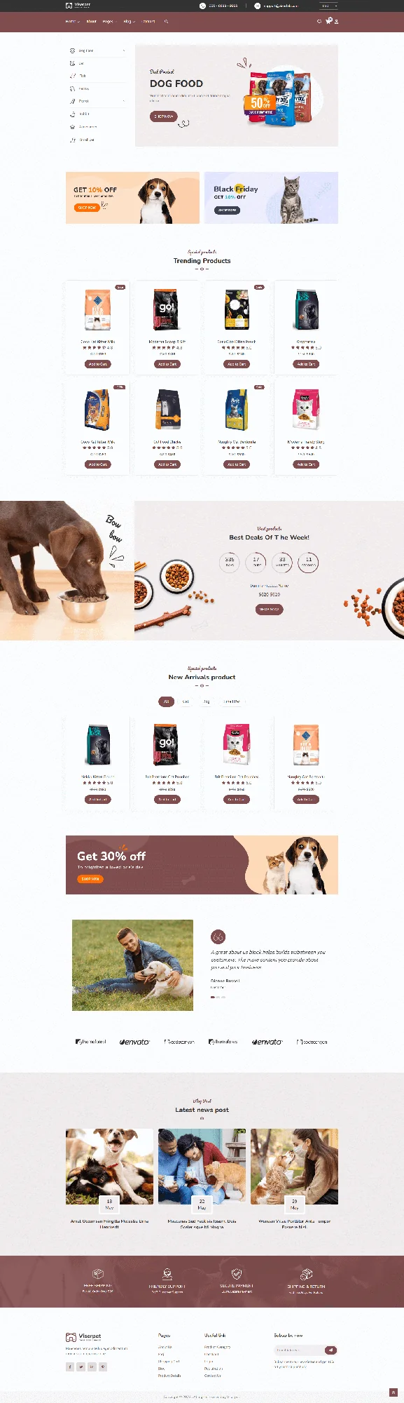 Viserpet is a modern and responsive Pet Shop & Pet Food eCommerce HTML Template designed for online pet stores, pet accessories shops, and animal care businesses. It includes beautifully crafted shop pages, product layouts, and blog sections, offering a clean design optimized for selling dog food, cat food, pet toys, grooming products, and all pet supplies. Built with SEO-friendly code, fast performance, and easy customization, Viserpet is the perfect template for creating professional pet eCommerce websites.