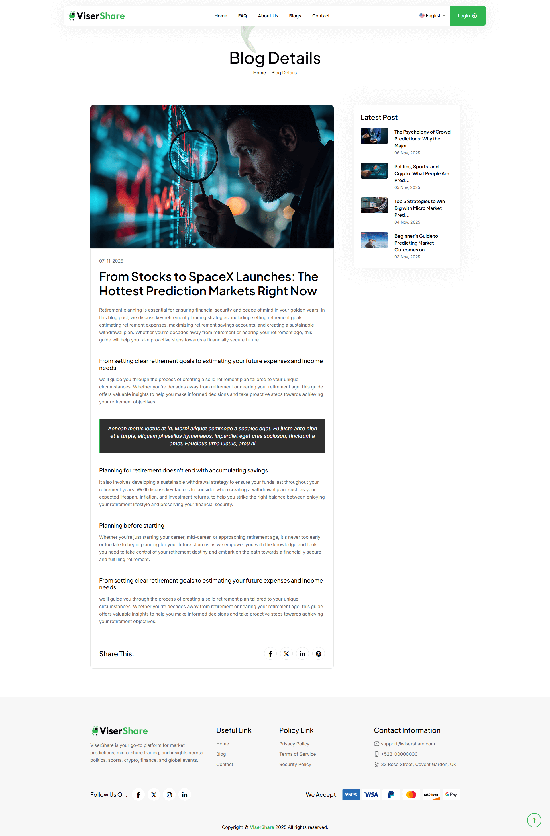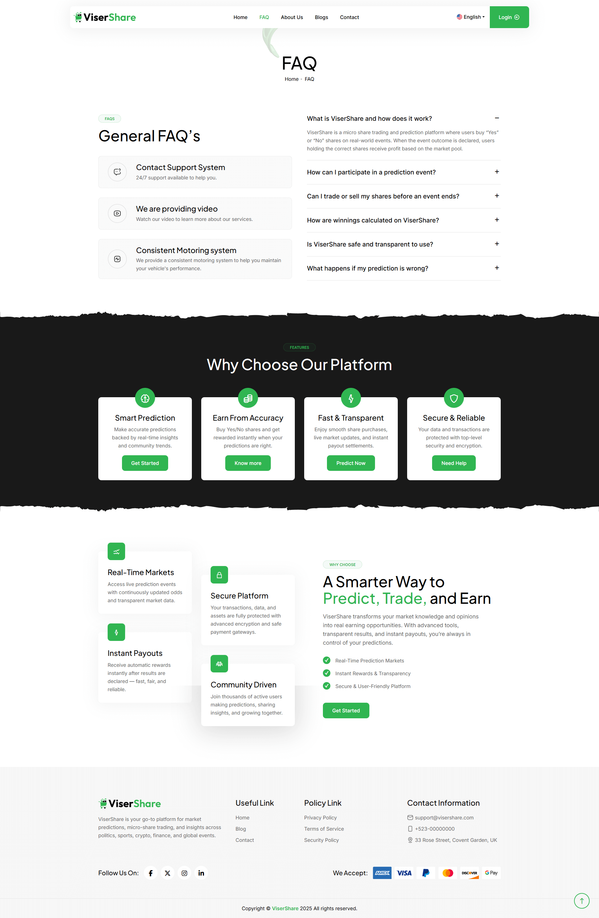 ViserShare is the first-ever Online Micro Share Trading And Prediction Platform available on CodeCanyon. ViserShare is an innovative Micro/Poly share trading and prediction platform designed to make financial markets accessible to everyone. Whether you are a beginner curious about market predictions or an experienced trader seeking a new approach, ViserShare offers a dynamic way to engage with share markets. In this platform, admins can easily create markets on various events – such as stock price movements, sports outcomes, political events, or any real-world scenario. Each market allows users to purchase micro shares based on their prediction (Yes/No or multiple-choice outcomes).