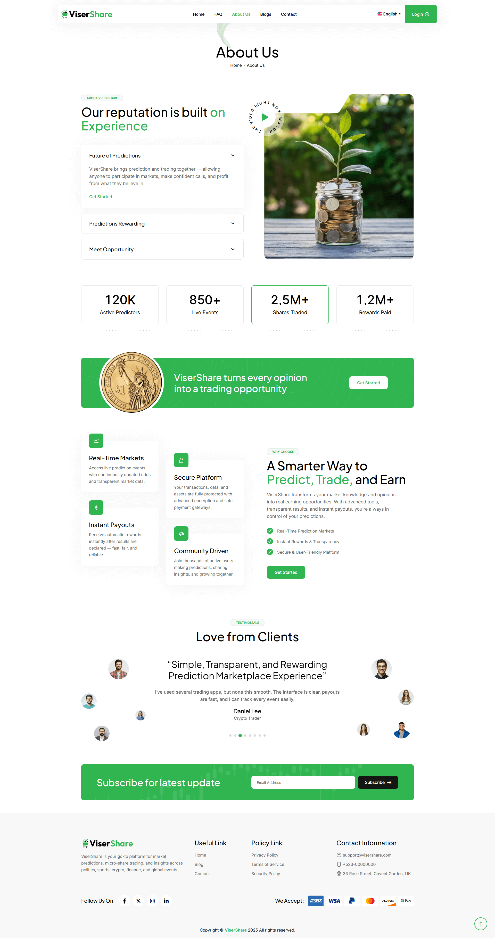 In ViserShare, when a market is resolved, winning users automatically receive their returns with profit, creating a fair, transparent, and rewarding ecosystem. With real-time updates, automated result calculations, and instant payouts, ViserShare offers a seamless experience for users to trade shares, make predictions, and earn profits in a fun yet professional environment. It features automated payments, a Trader panel, digital notifications, secure transactions, and more. With no monthly fees, no hidden charges, and no encryption restrictions. ViserShare is offered at a one-time, affordable lifetime price. The platform includes all the essential tools needed to run a global Micro Share Trading Platform efficiently.