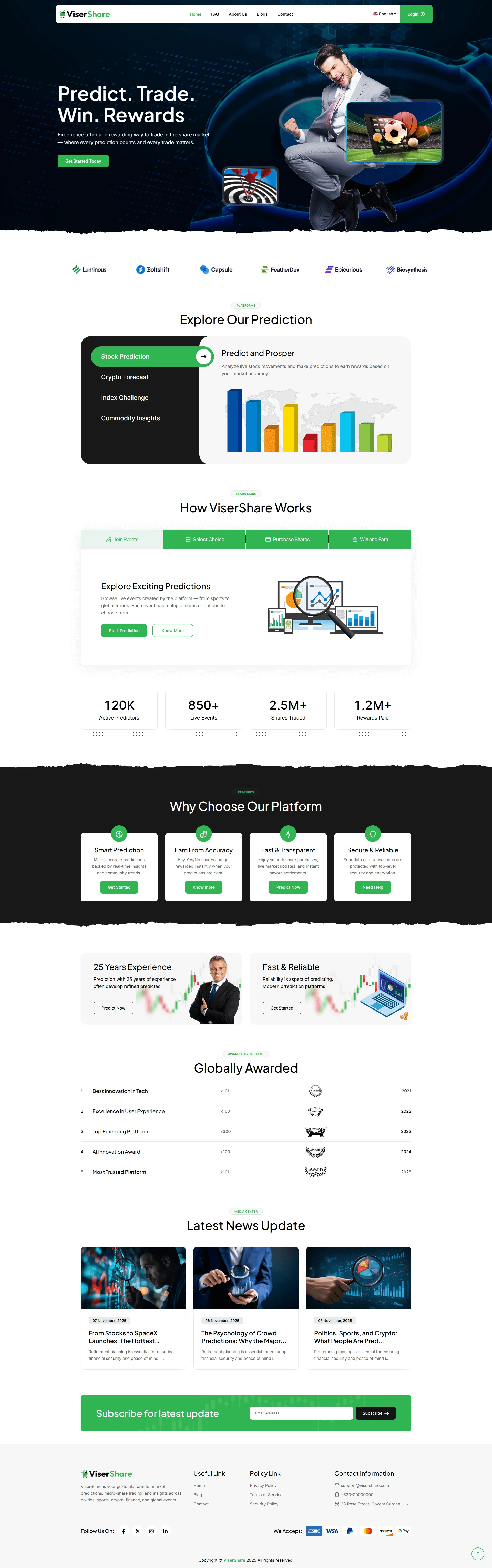 ViserShare is a versatile micro share-trading and prediction platform that enables users to buy micro-shares on predicted outcomes (stock-price moves, events, etc.), see real-time updates, and earn returns. With automated payout, secure transactions and intuitive dashboards, it makes share-market trading and forecasting accessible for all.