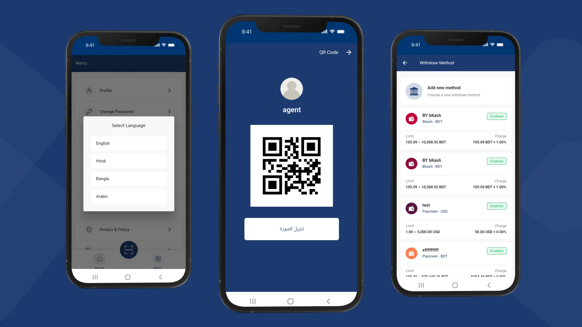 XCash – Agent App is a robust, cross-platform fintech solution developed with modern mobile frameworks to ensure high performance on both Android and iOS devices. The system supports wallet creation, secure authentication, encrypted transactions, agent-customer operations, settlement management, and API-driven integrations with payment gateways and financial systems. Its modular architecture allows easy customization, while real-time dashboards, audit logs, and role-based access keep operations transparent and secure.