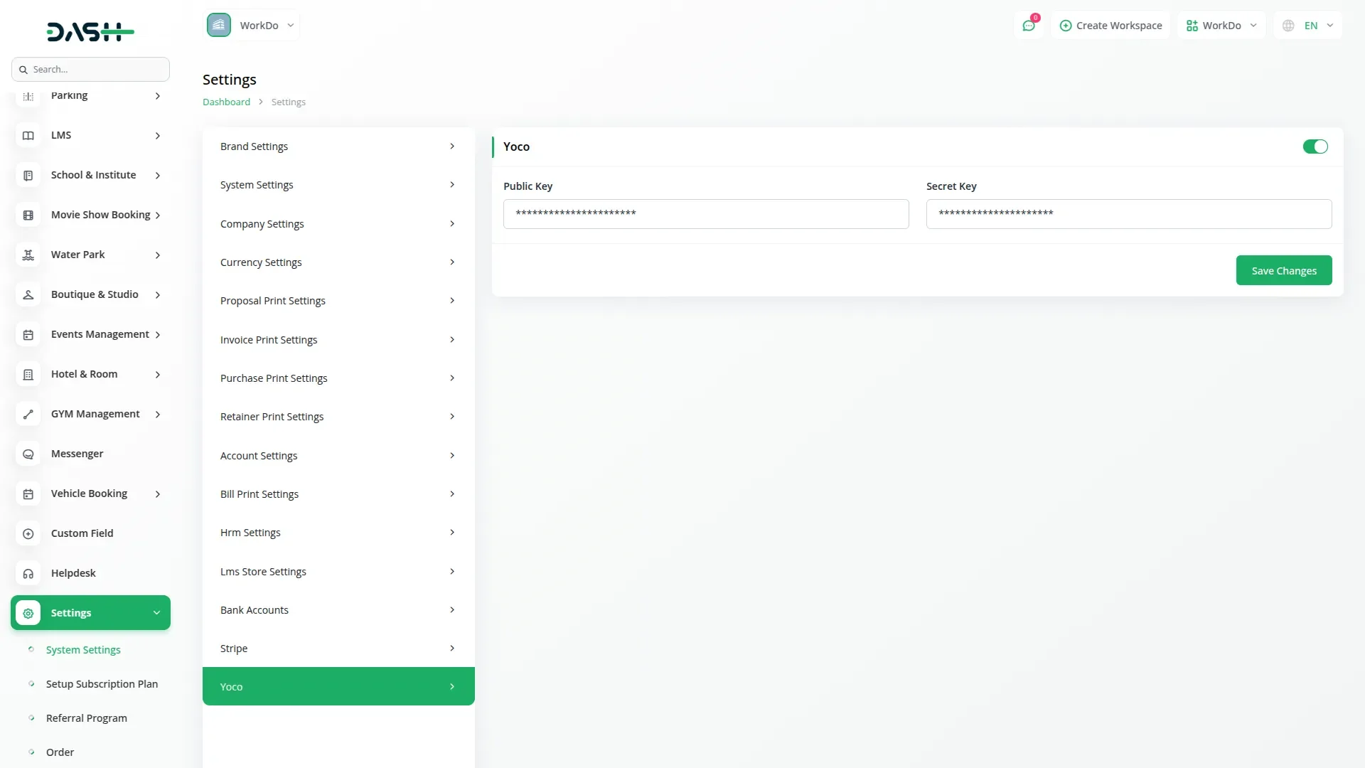 API Key Settings Page for Yoco Integration